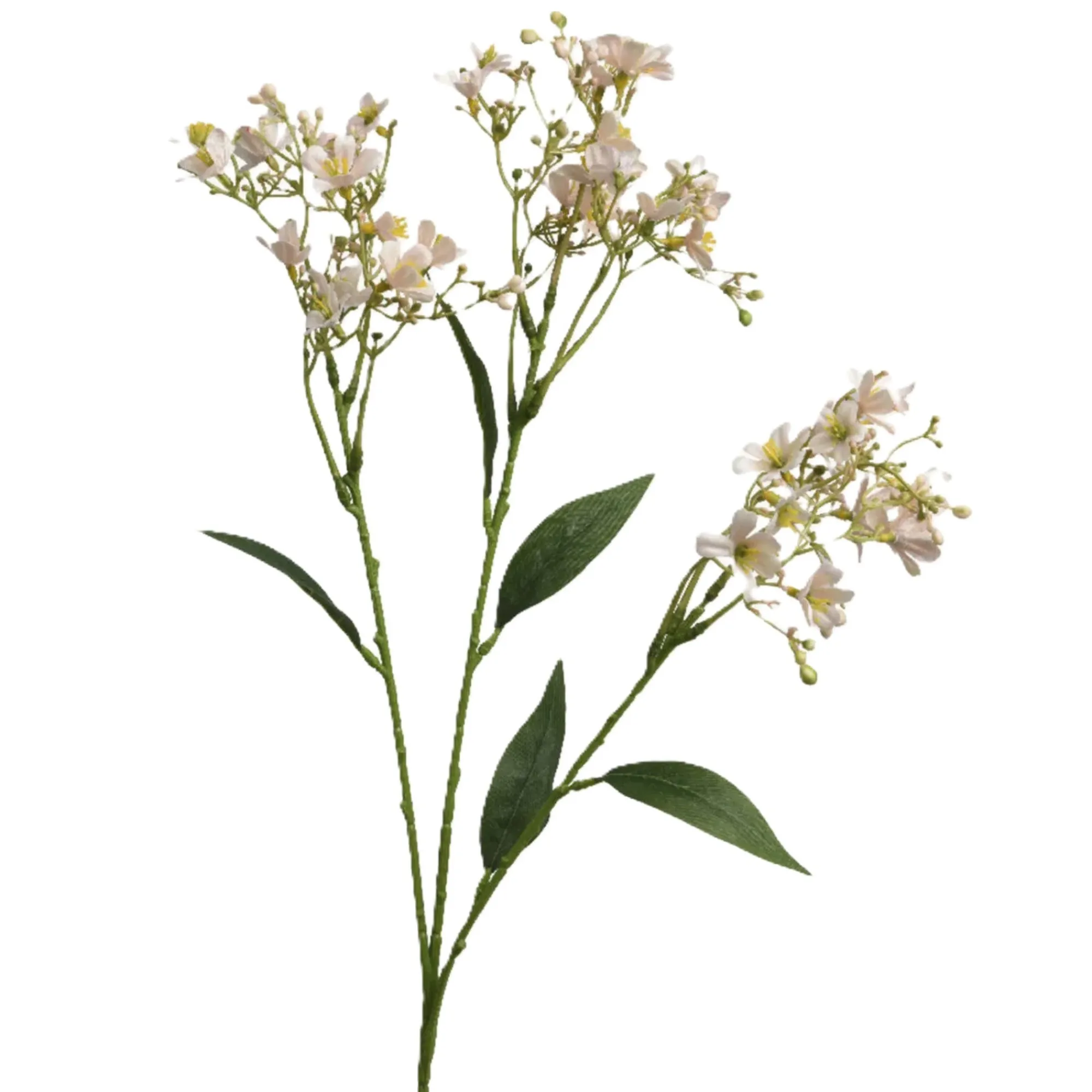 Kunstbloem met sierlijke bloesems en een zachte uitstraling. Perfect voor gebruik in een vaas of als decoratief element in een bloemstuk.