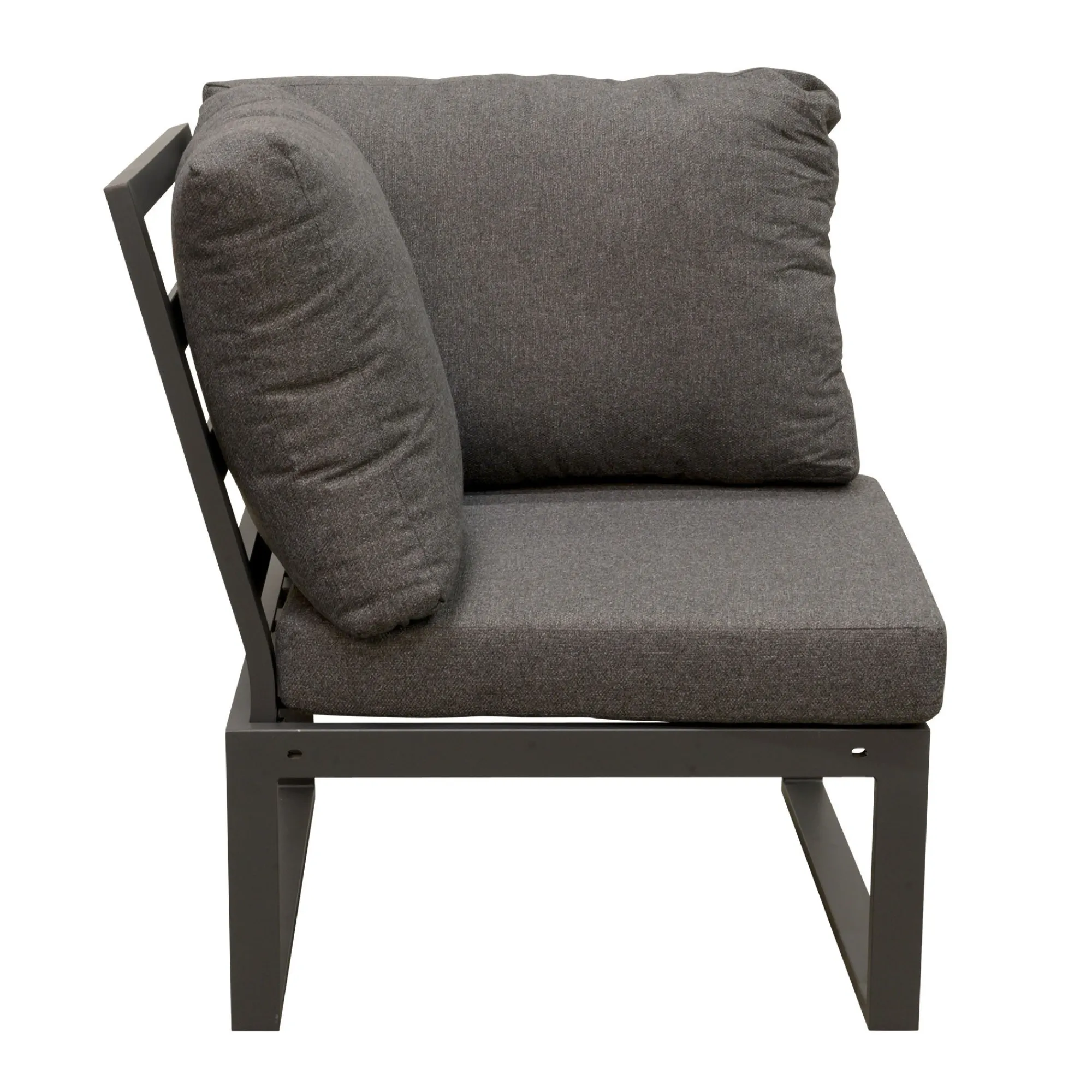De hoekbank Foxton Antraciet heeft een stevig aluminium frame. Wordt geleverd met kussens voor extra comfort, ideaal om een gezellige zithoek te creëren in je tuin.