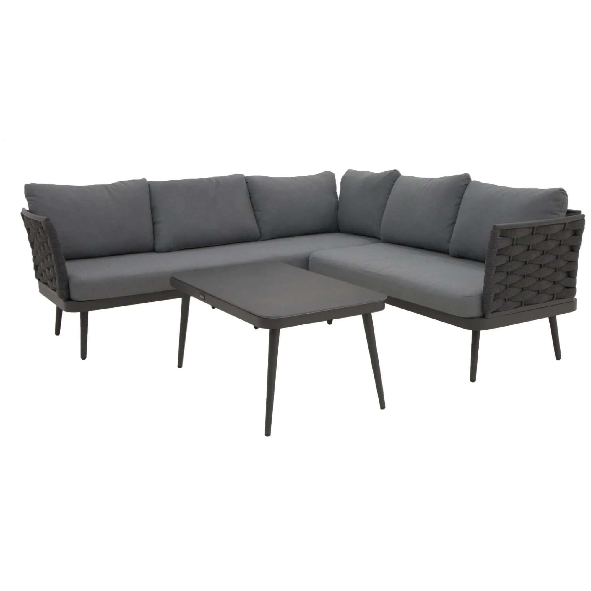 De Sulden loungeset is een stijlvolle en comfortabele set, ideaal voor het creƫren van een moderne en rustieke sfeer in je tuin, op je terras of balkon. Het materiaal van de set is van aluminium met touw eromheen geknoopt. De set is voorzien van comfortabele kussens die extra ondersteuning en comfort bieden.