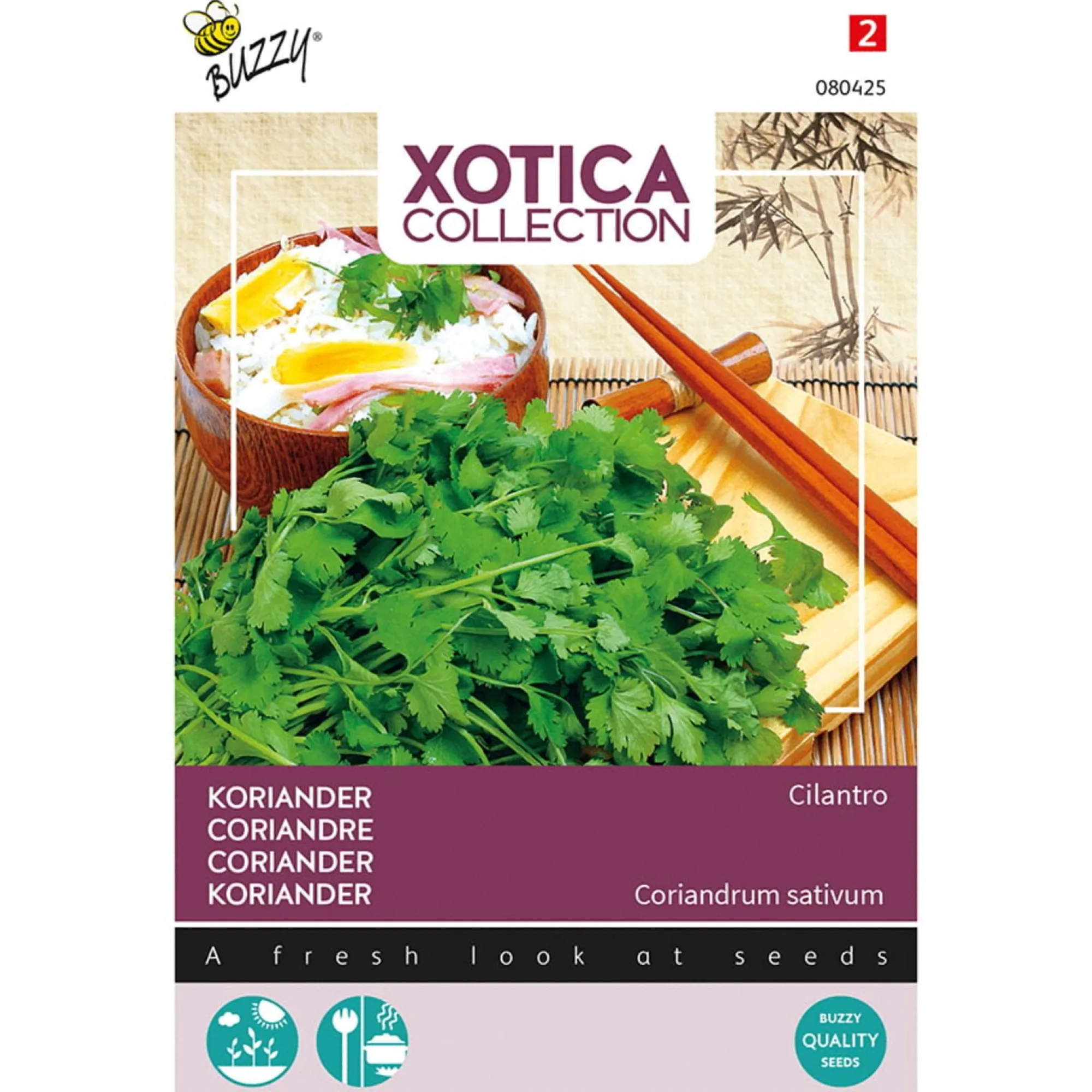 Aromatisch kruid met frisse, kruidige bladeren en zaden. Onmisbaar in de Aziatische, Latijns-Amerikaanse en Midden-Oosterse keuken. Geschikt voor teelt in pot of volle grond.