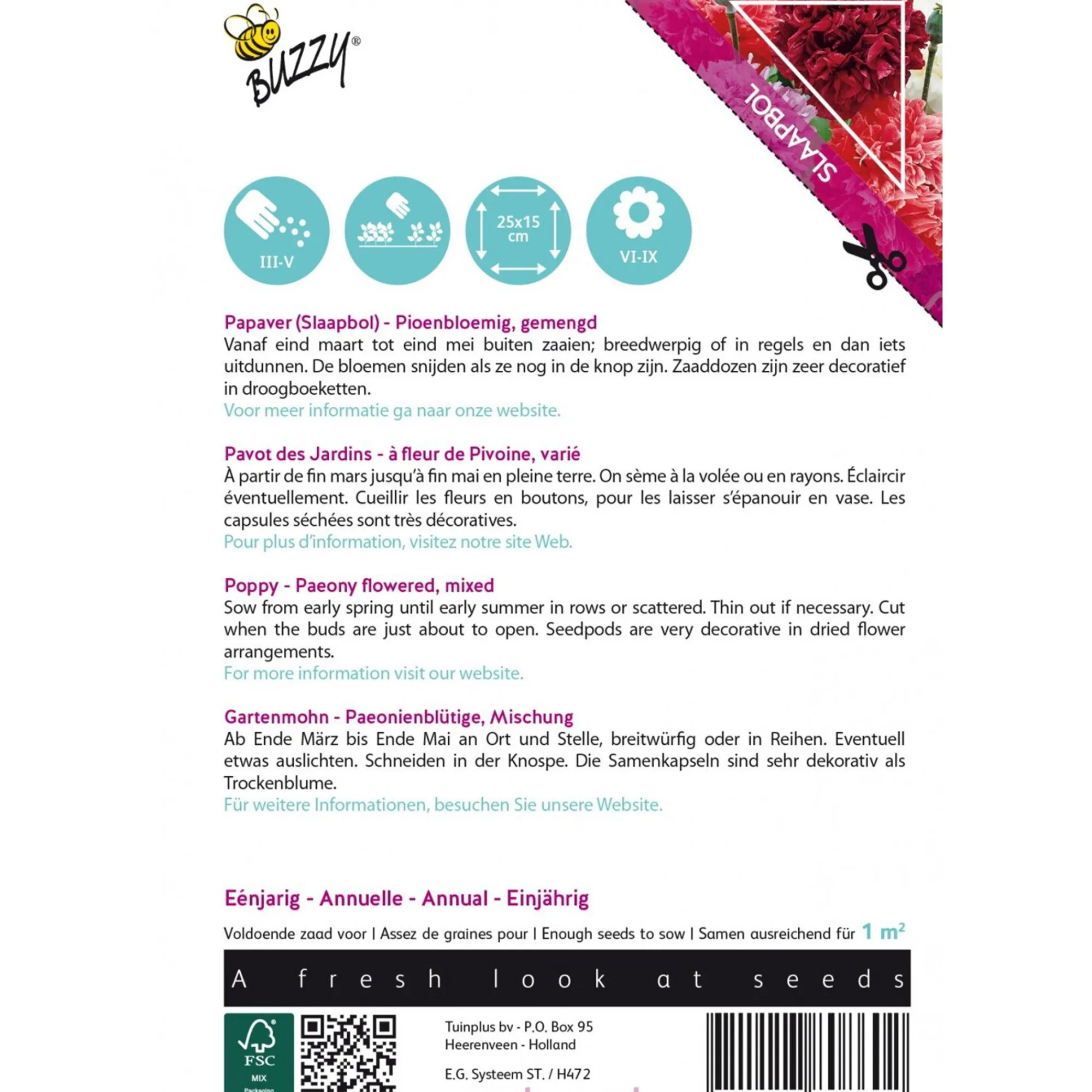 Buzzy Moestuin>Papaver Pioenbloemig