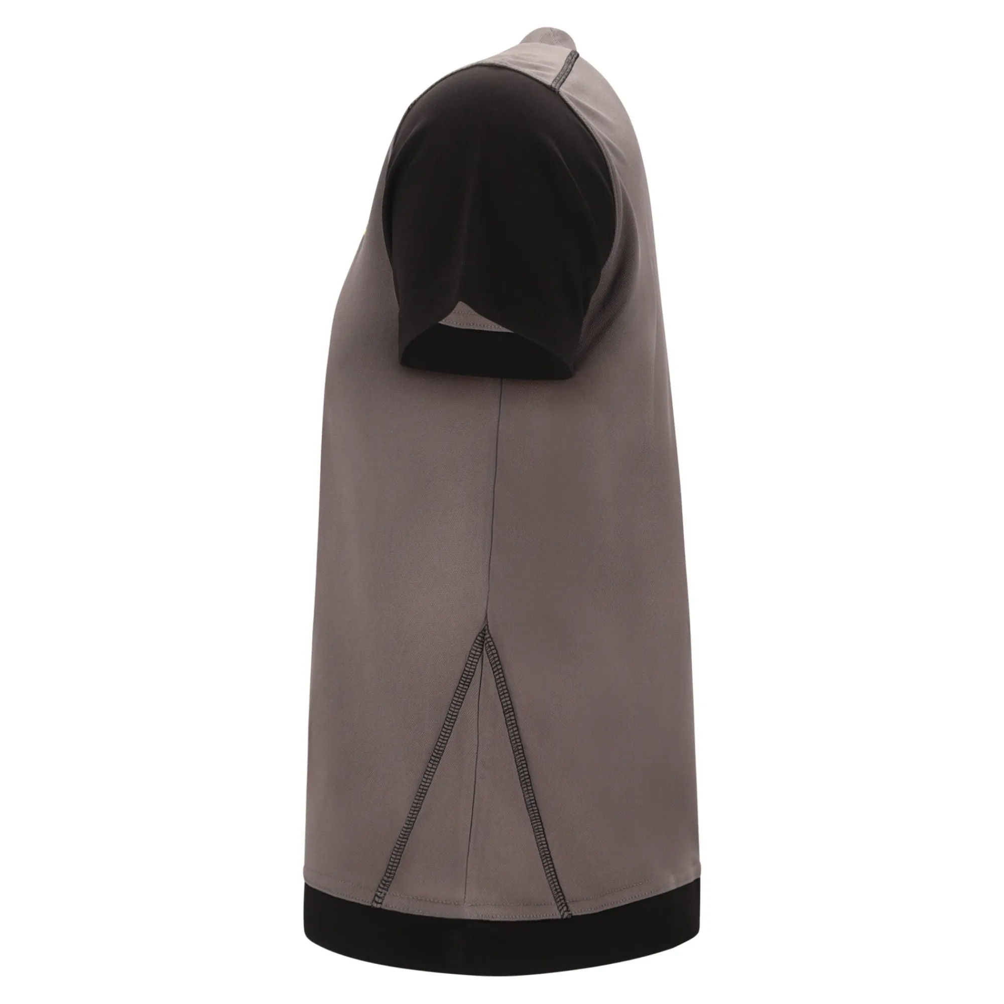 Grijs T-shirt van Cratex. Met zwarte korte mouwen en met klein logo. Verkrijgbaar in de maten XS-4XL.
