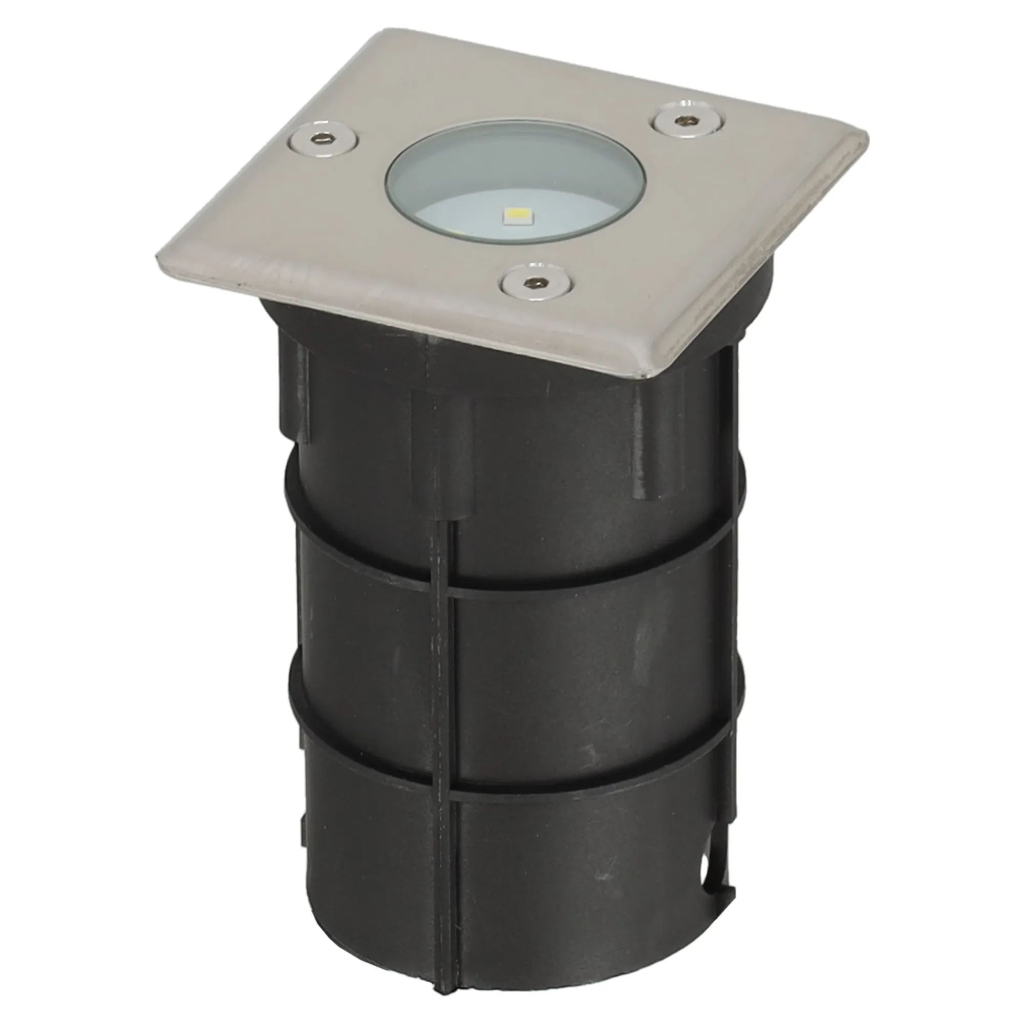 Een vierkante LED-grondspot van 6,5×6,5 cm, met een strak en duurzaam ontwerp. Geschikt voor het verlichten van diverse buitenlocaties, zoals paden, vlonders en andere decoratieve elementen.
