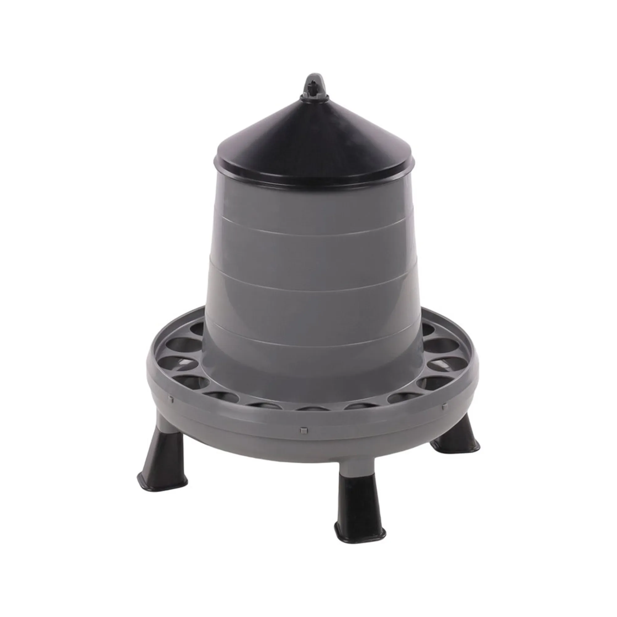 De kunststof kippenvoerbak Edna is praktisch in gebruik en gaat voerverspilling tegen. Ideaal als voerbak voor je kippen. Dankzij de deksel aan de bovenzijde is hij eenvoudig te vullen. De rubberen poten voorkomen schuiven en zorgen ervoor dat de kippenvoerbak hoger staat, wat prettig is voor de kippen tijdens het eten. De voerbak kan zowel geplaatst als opgehangen worden.