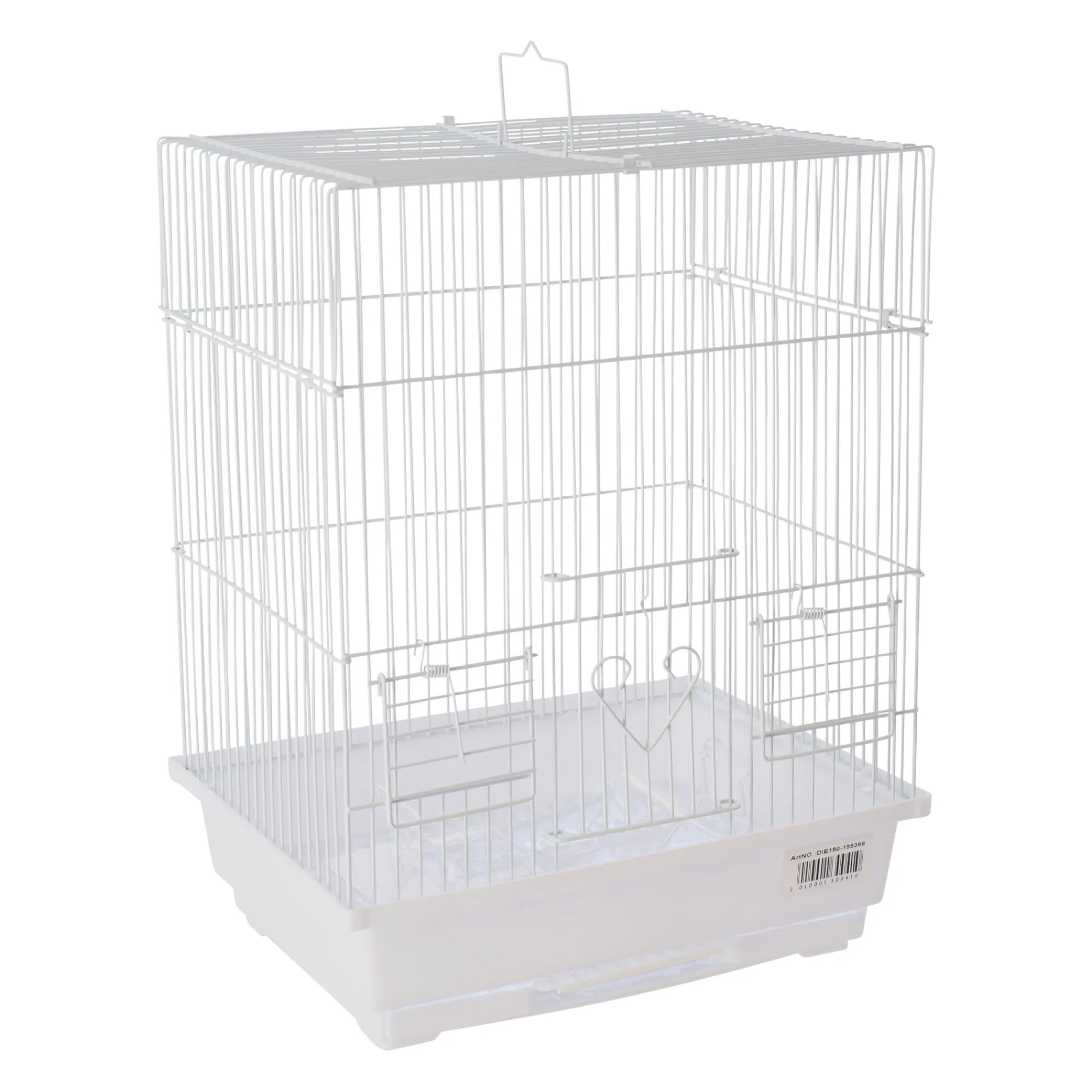 De is een compacte en functionele vogelkooi in een. Deze kooi is perfect geschikt voor kleine vogels en biedt een comfortabele leefruimte. Het ontwerp omvat zitstokken, voer- en drinkbakjes, en een uitneembare bodemlade voor eenvoudig schoonmaken.