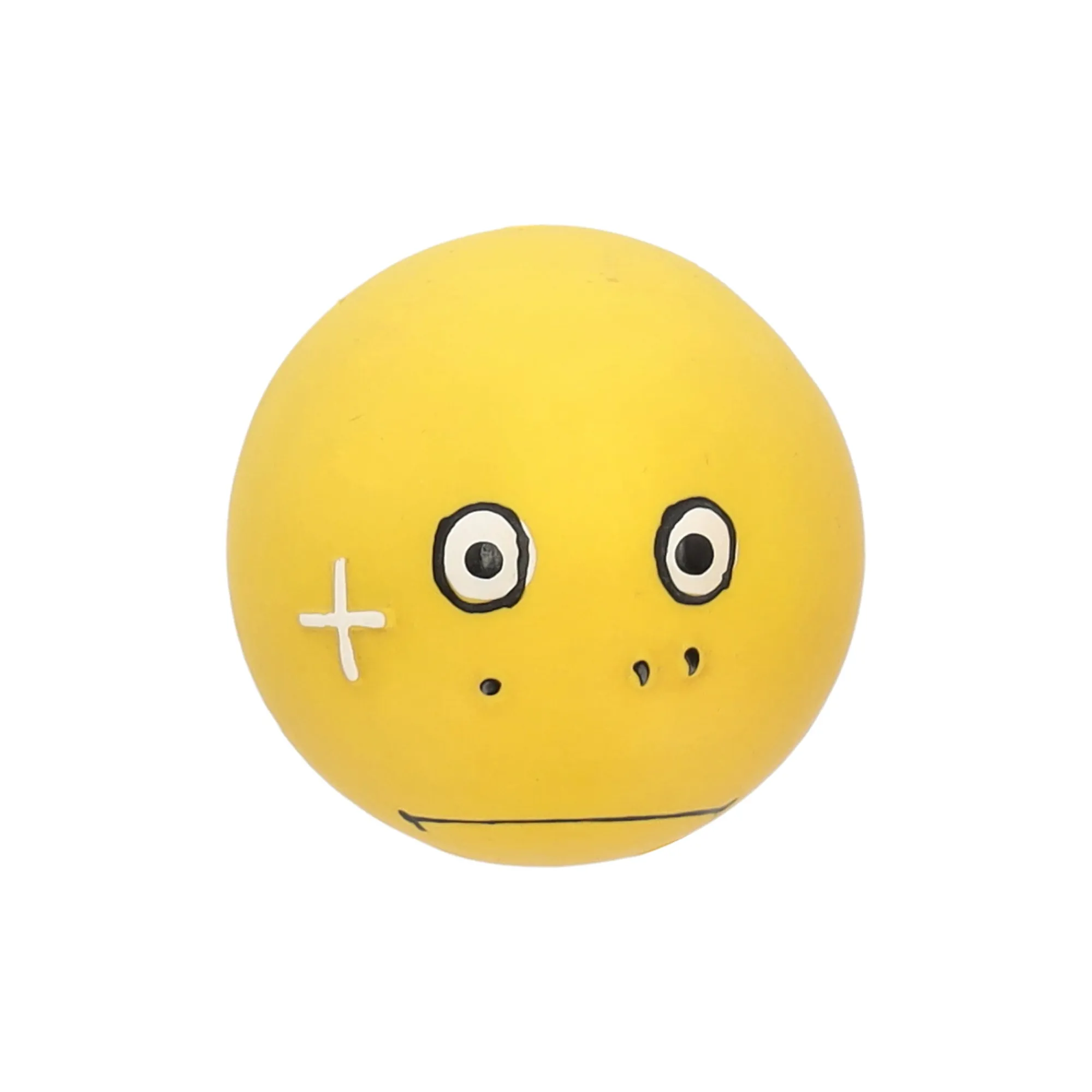 Deze latex hondenbal van 6 cm heeft een grappige smiley-opdruk die meteen opvalt. Het soepele materiaal maakt de bal geschikt om in te bijten en mee te spelen, terwijl het lichte gewicht zorgt dat hij makkelijk wegstuitert. Perfect voor korte speelmomenten en wat extra plezier.