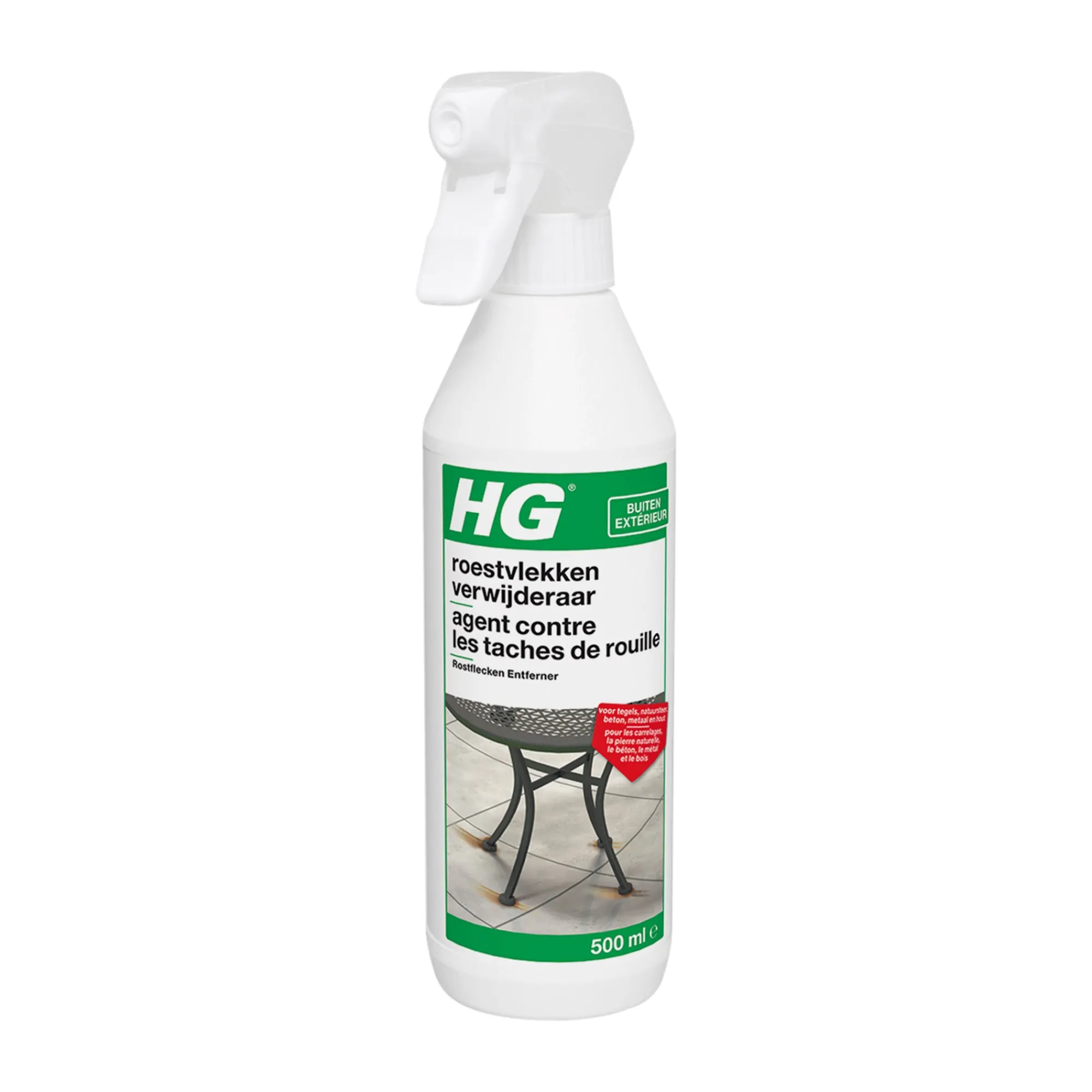 HG roestvlekkenverwijderaar verwijdert eenvoudig en veilig roestvlekken en andere oxidatievlekken uit keramische tegels, beton, marmer, dakpannen, metaal en hout. Na behandeling met deze roestverwijderaar zien deze oppervlakken er weer als nieuw uit.