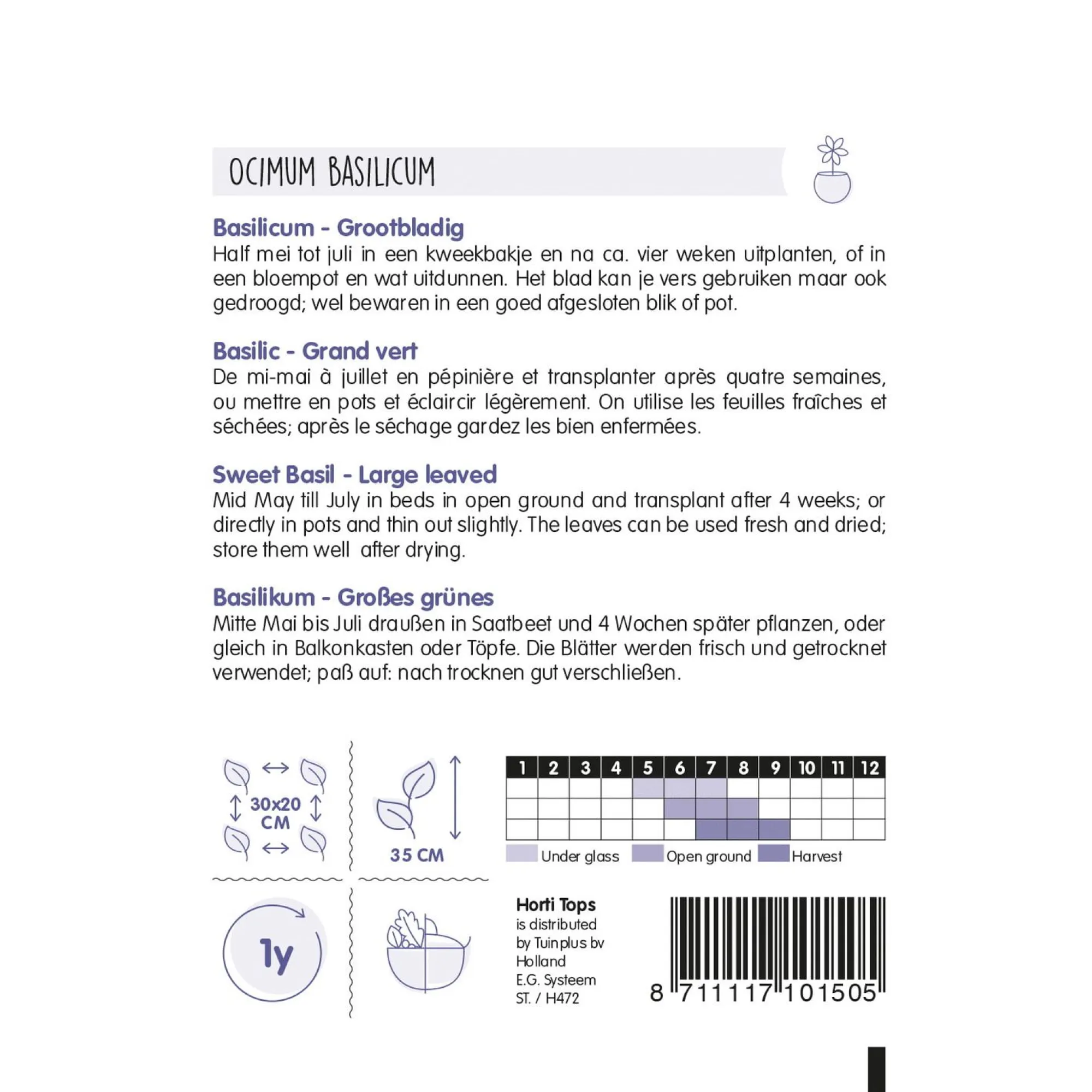Horti Tops Moestuin>Basilicum grove zaad