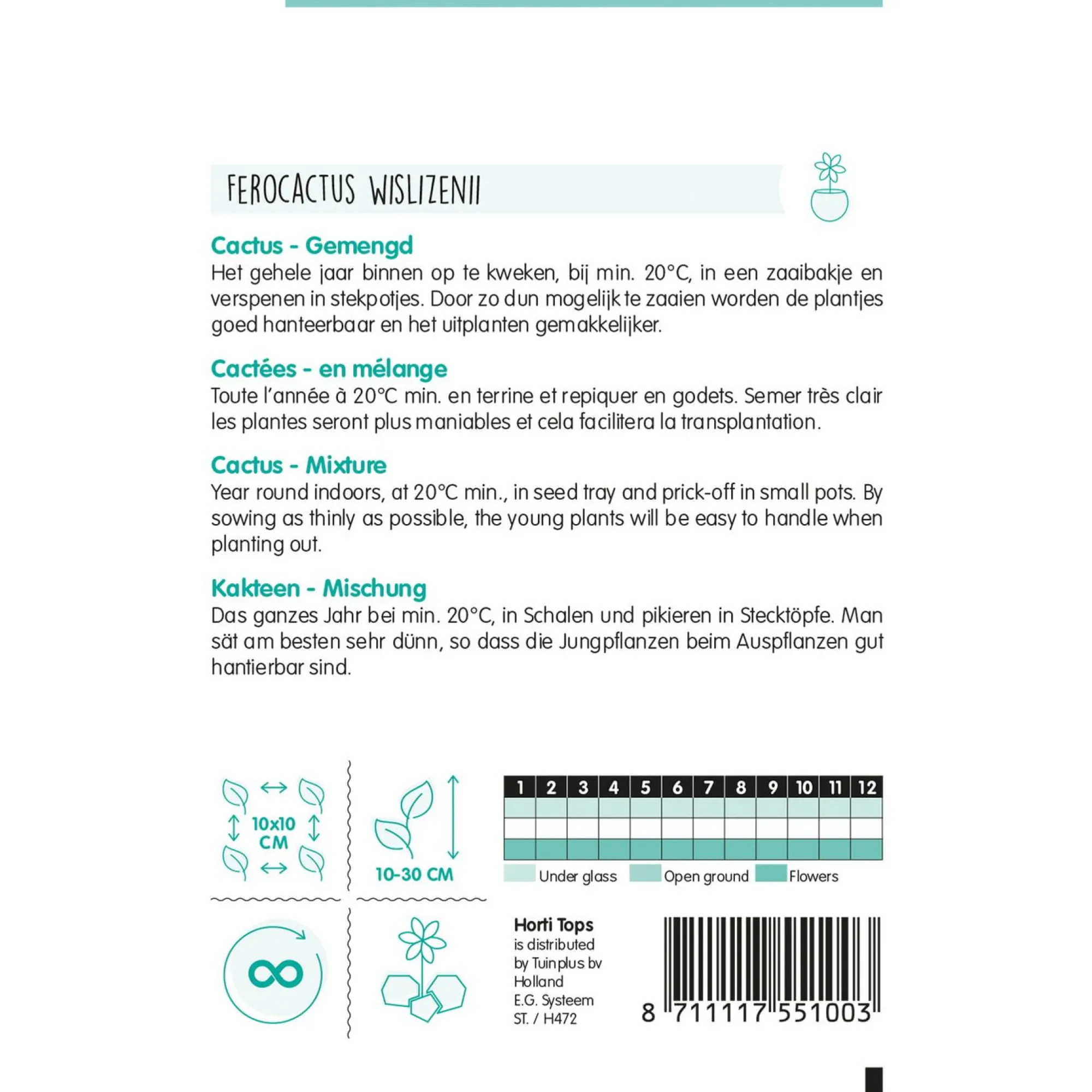 Mix van zaadjes voor het kweken van cactussen. Het gehele jaar binnen te kweken bij minimaal 20°C.