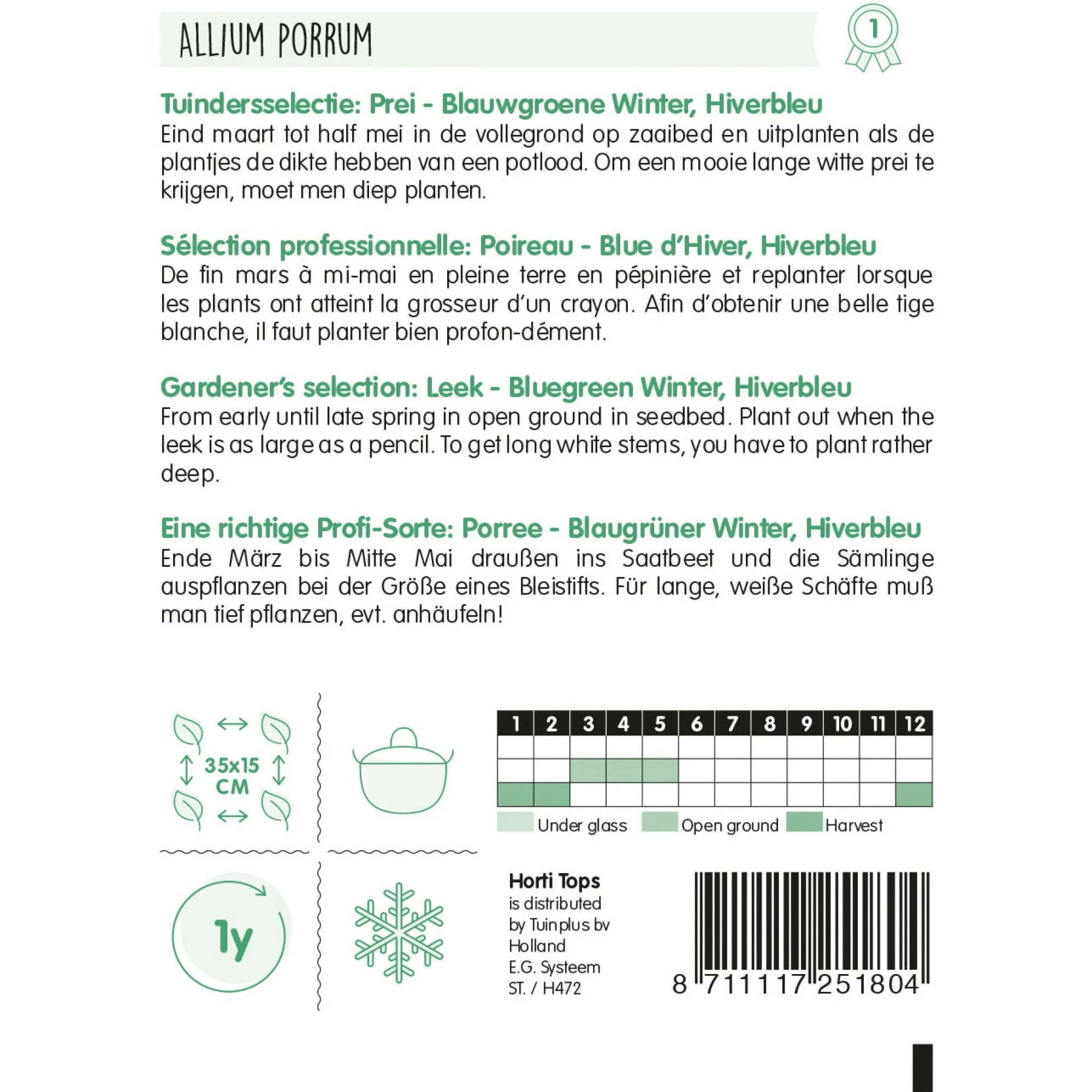 Horti Tops Moestuin>Prei blauwgroene winter hiverbleu zaad
