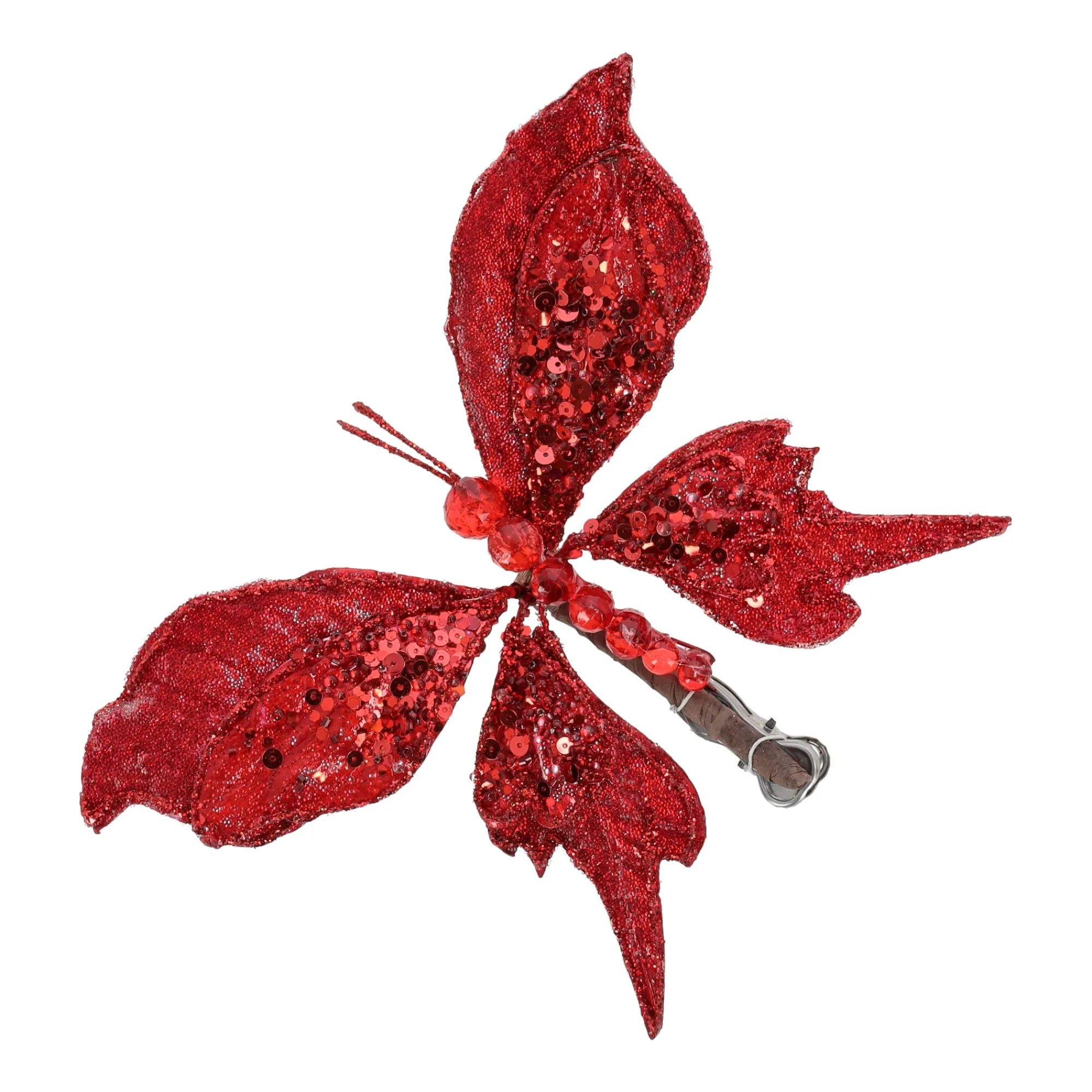 Kerstdecoratie>Vlinder 17cm winter lux rood