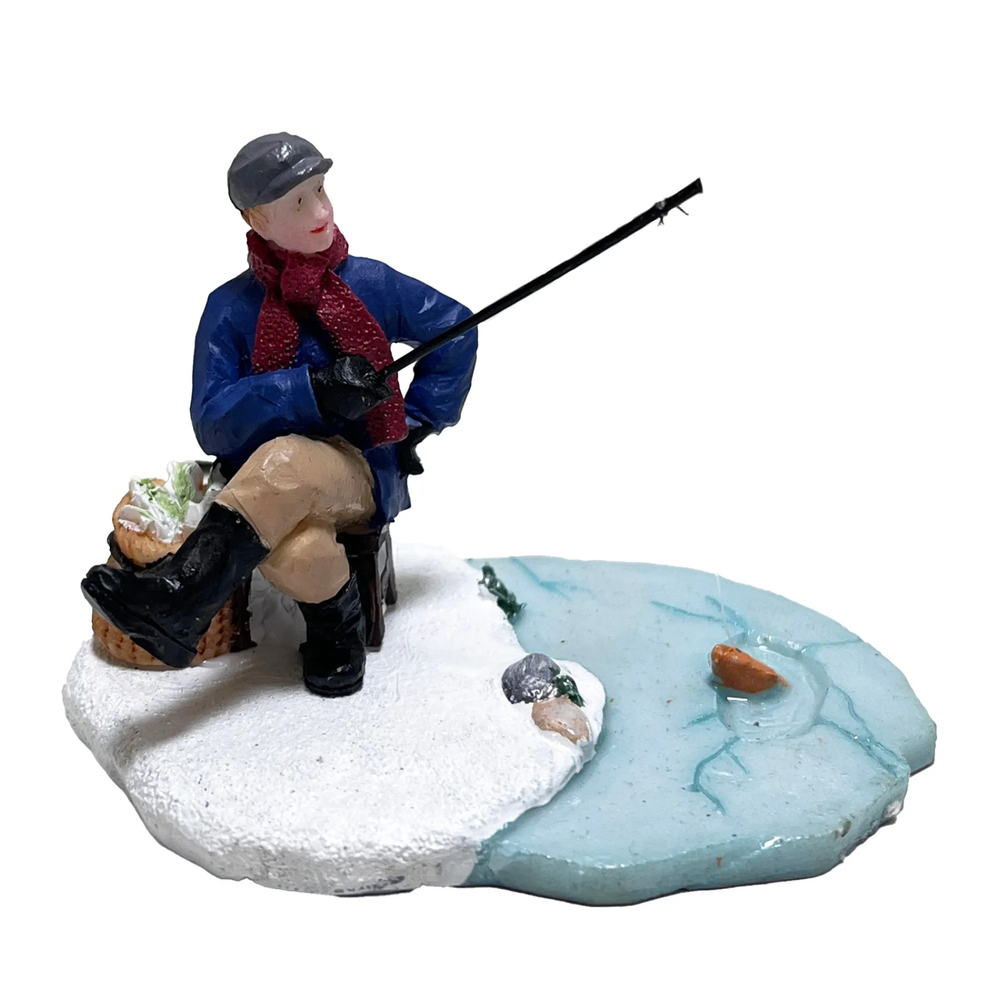 Decoratief figuurtje van een visser die zittend is afgebeeld, ideaal om extra sfeer en detail toe te voegen aan een kerstdorp.