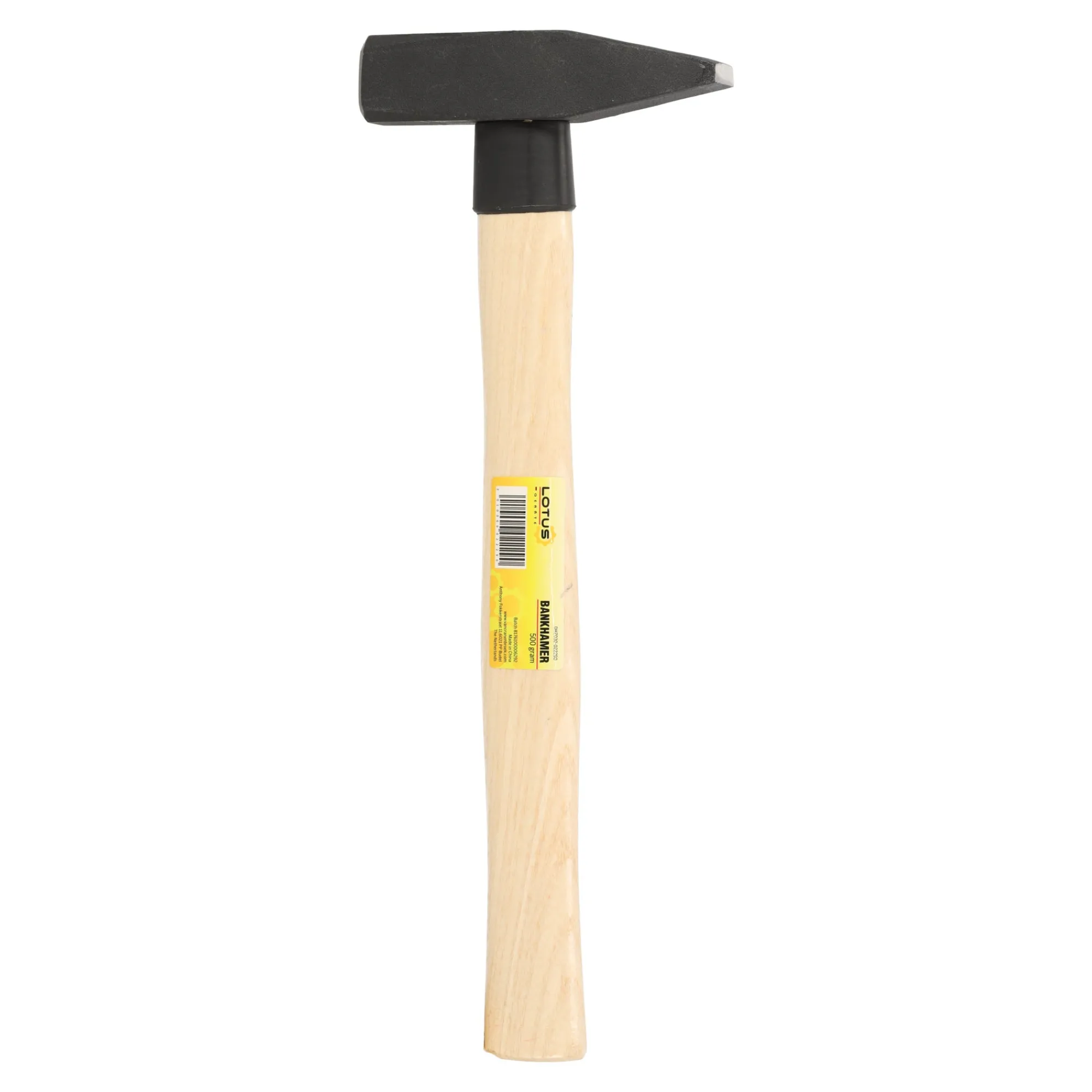 Bankhamer 500 gram Lotus is een stevige hamer met stalen kop en houten steel. Geschikt voor zwaardere timmer- en montageklussen.
