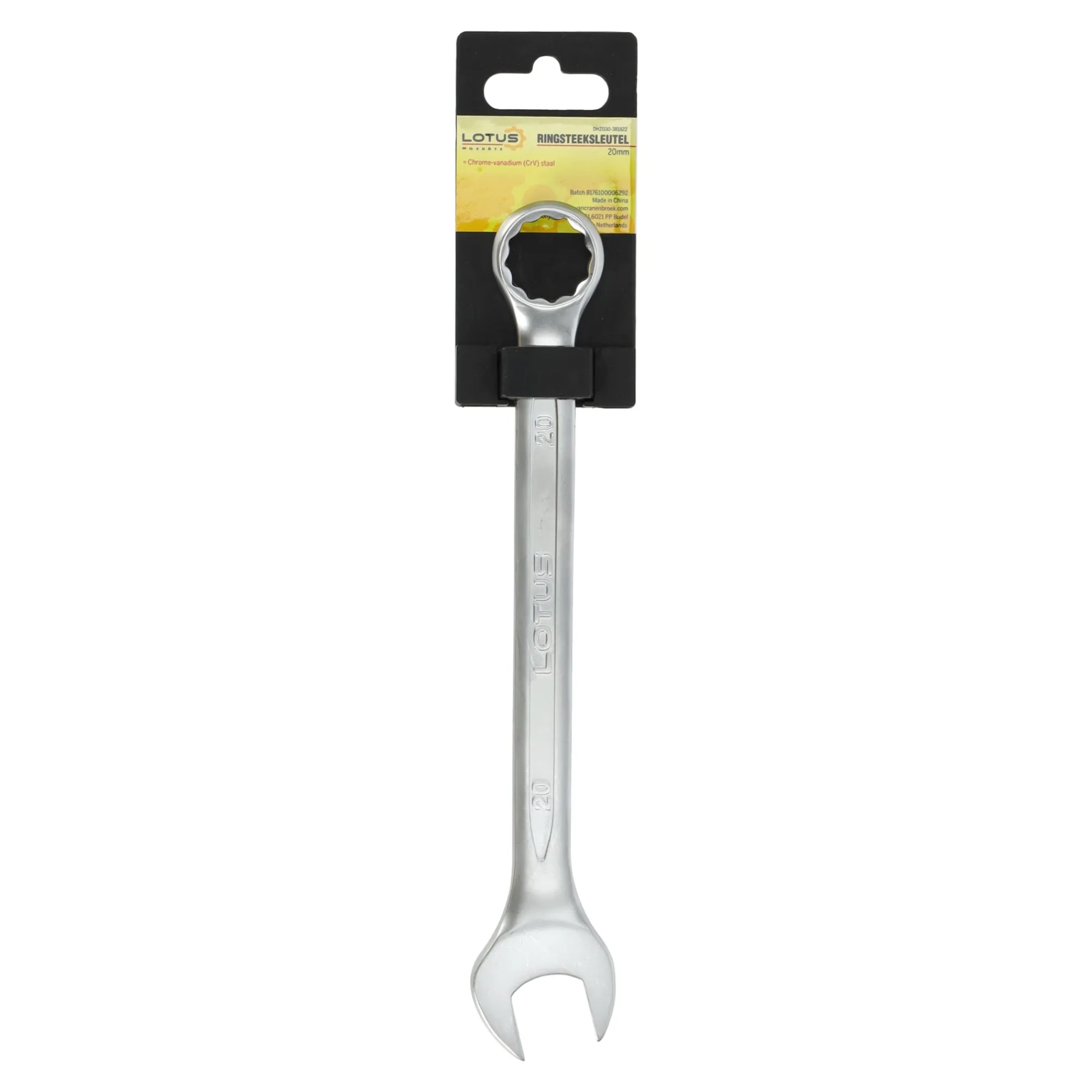 De 20 mm CV Lotus ringsteeksleutel is een hoogwaardig gereedschap dat een ringsleutel en steeksleutel combineert. Gemaakt van chroom-vanadiumstaal (CV), biedt het uitstekende sterkte en duurzaamheid. Dit gereedschap is perfect voor nauwkeurig werk waarbij een stevige grip met minimale inspanning nodig is. Een uitstekende keuze voor zowel professionals als doe-het-zelvers.