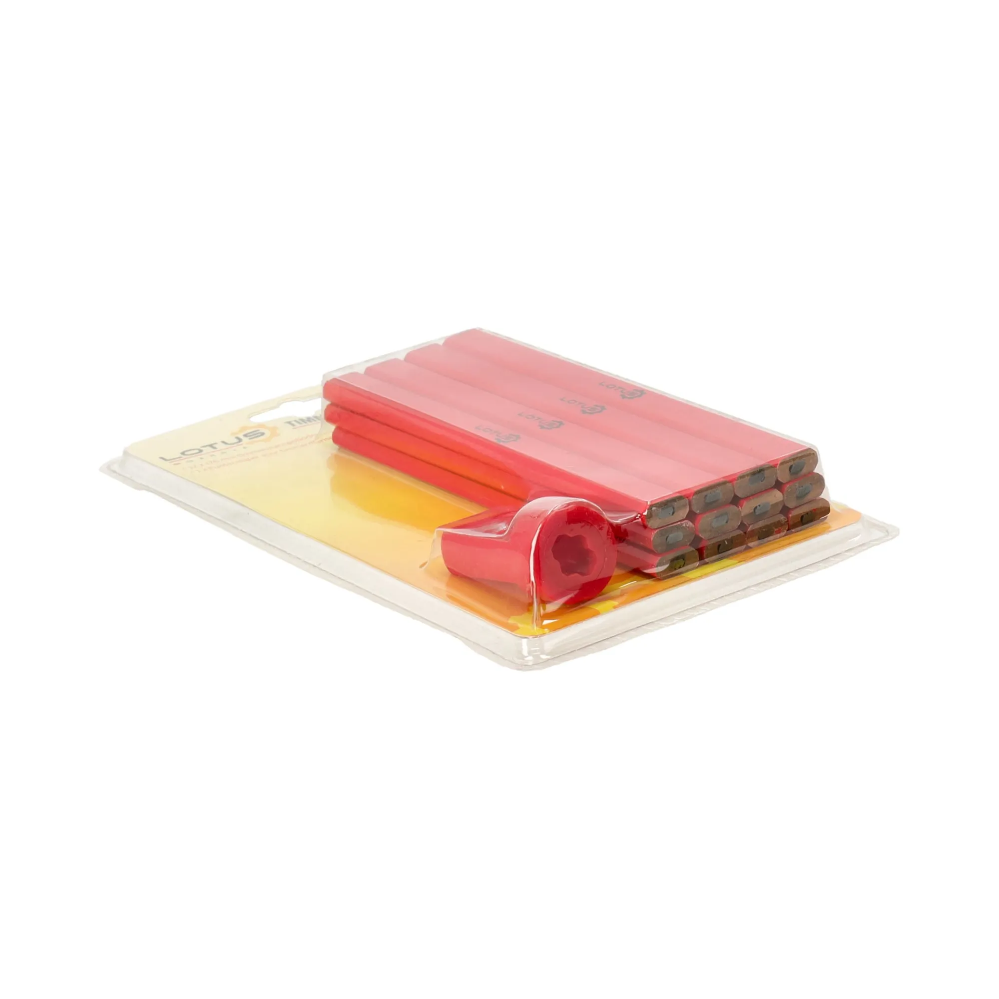 De Lotus timmermanspotlodenset bevat 12 hoogwaardige potloden en een slijper, perfect voor nauwkeurige markeringen op diverse oppervlakken. Duurzaam en slijtvast, deze potloden zijn ideaal voor zowel professionele timmerlieden als doe-het-zelvers.