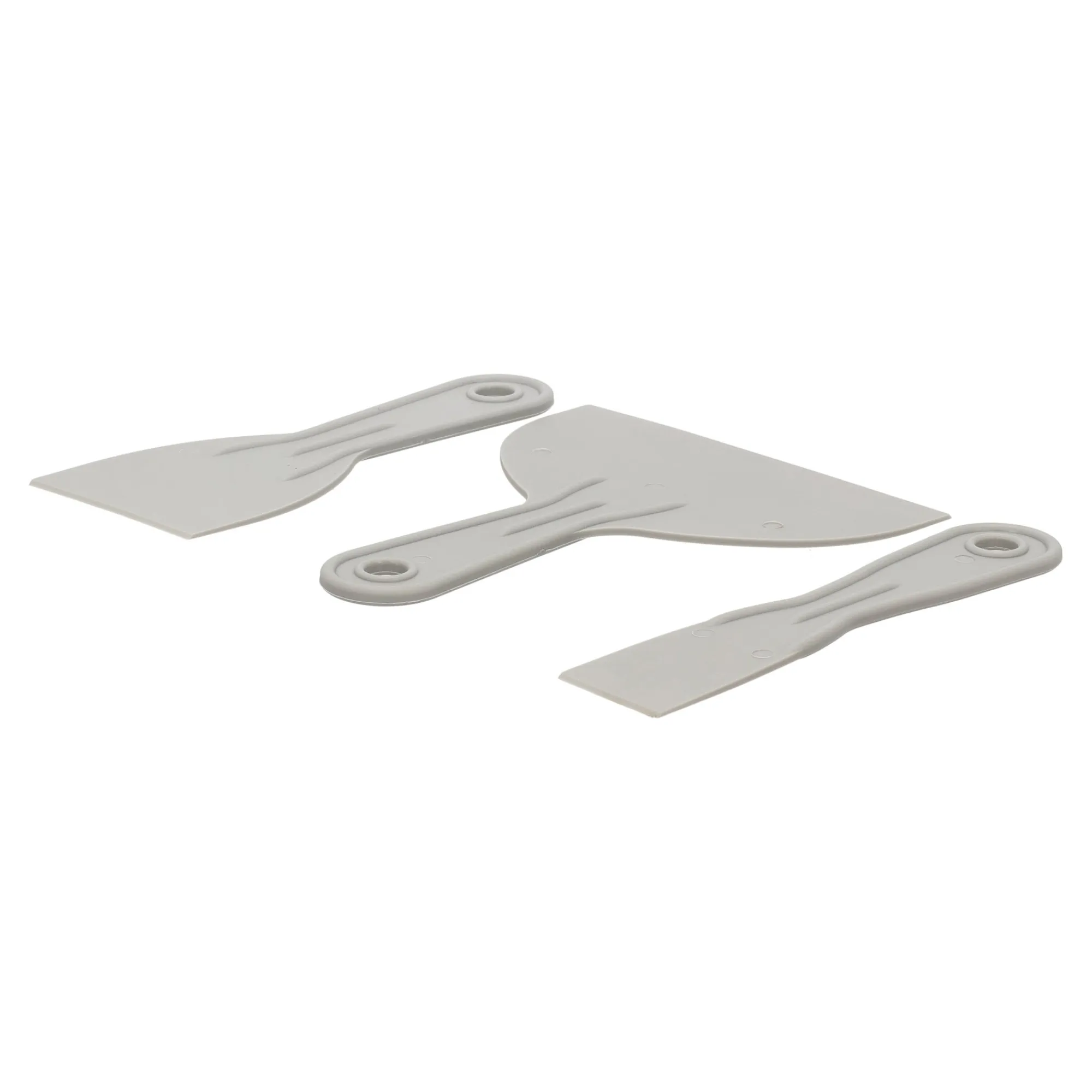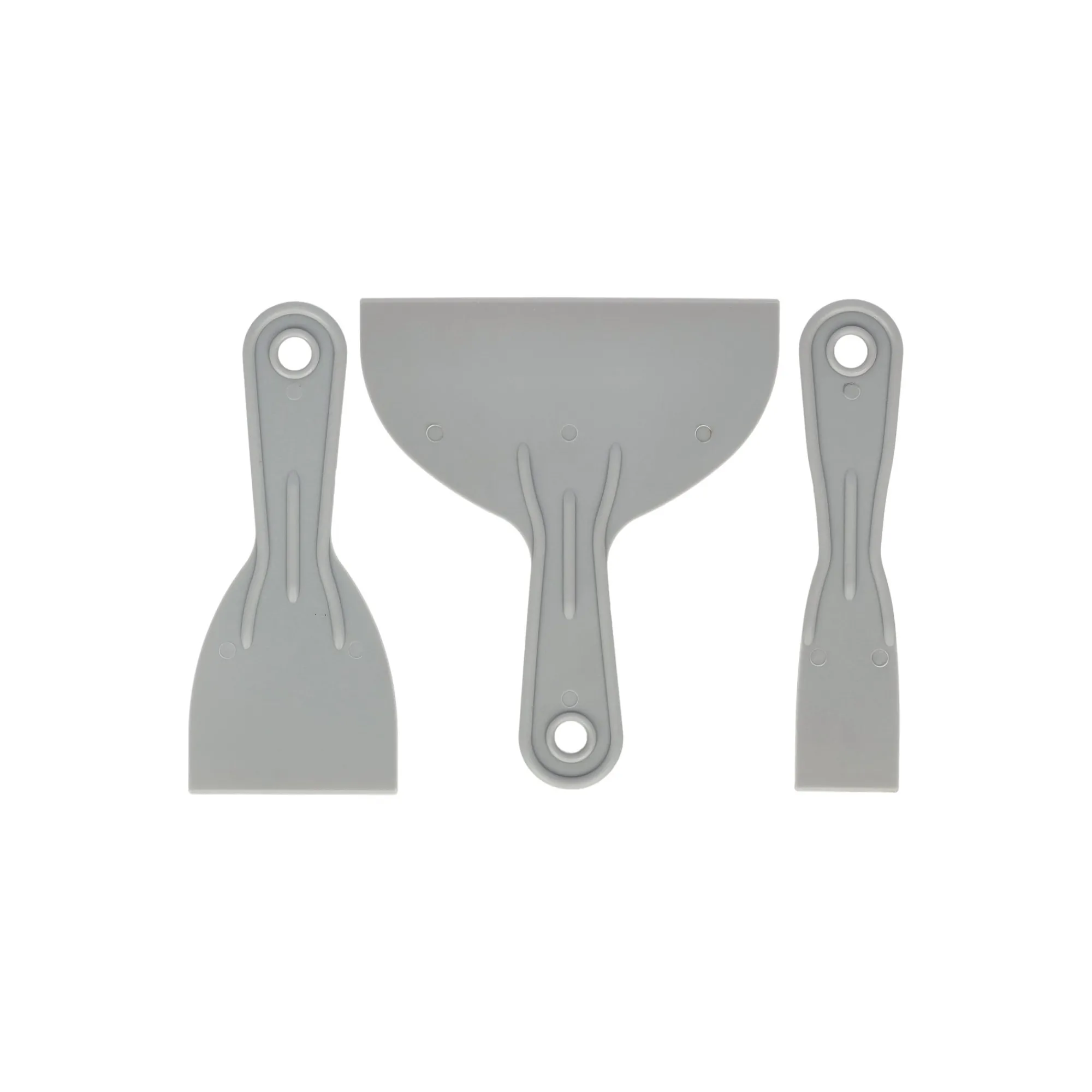 Lotus 3-delige set, met kunststof plamuurmessen van 38, 76 en 152 mm breed. Geschikt voor het aanbrengen en gladstrijken van plamuur of vulmiddel op wanden en plafonds.