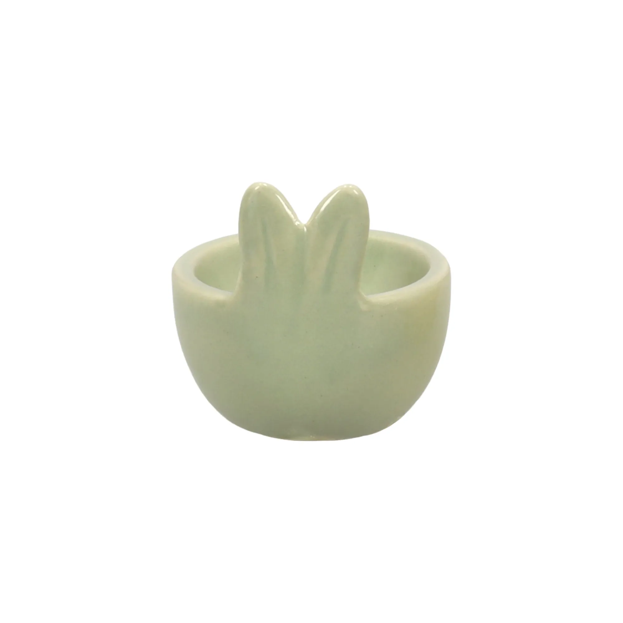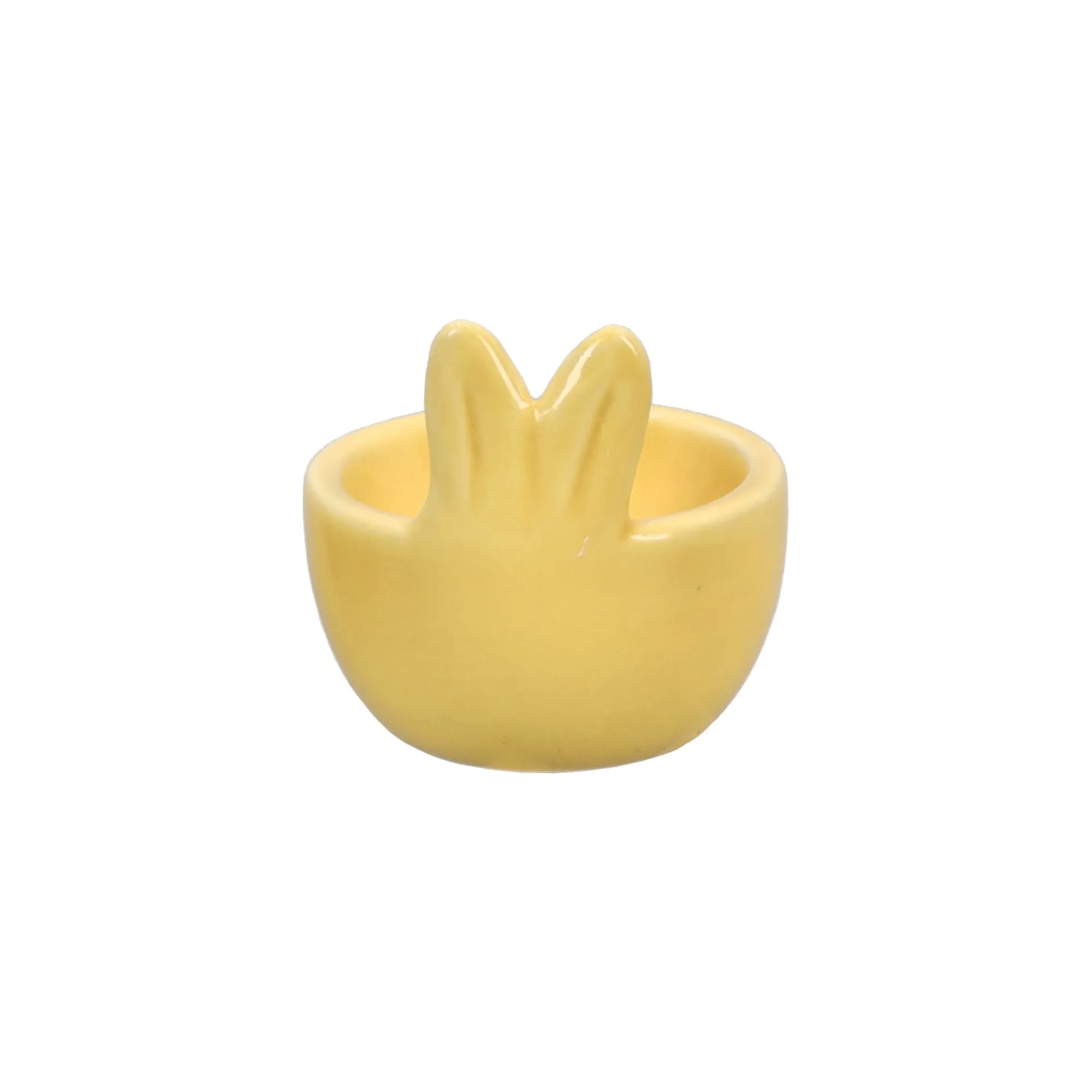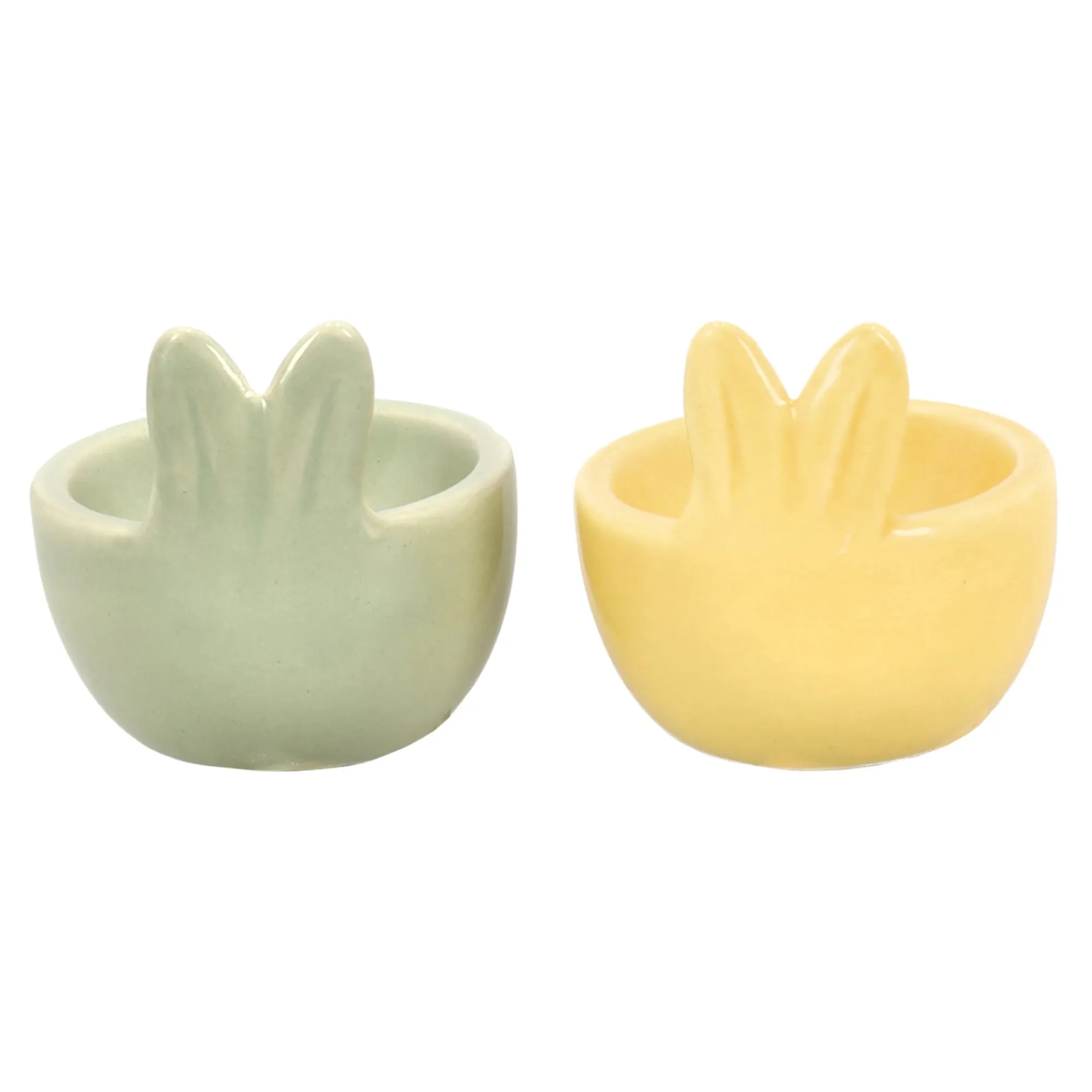 Porseleinen eihouder met konijnenoren. Charmante tafeldecoratie, verkrijgbaar in twee kleuren.
