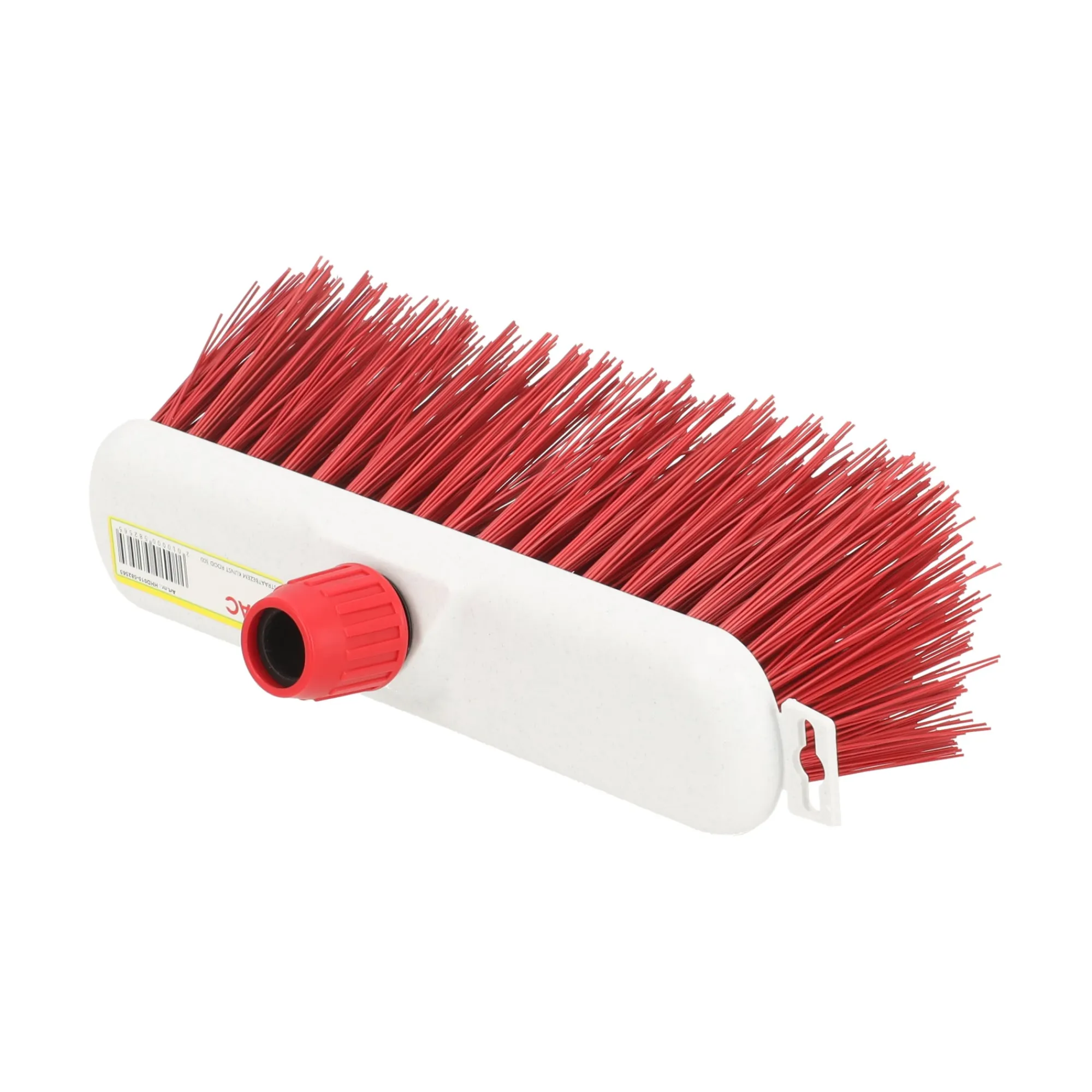 De straatbezem met kunststof vezels in rood is een duurzame bezem, speciaal ontworpen voor het schoonmaken van ruwe buitenoppervlakken, zoals trottoirs, straten, opritten en terrassen.