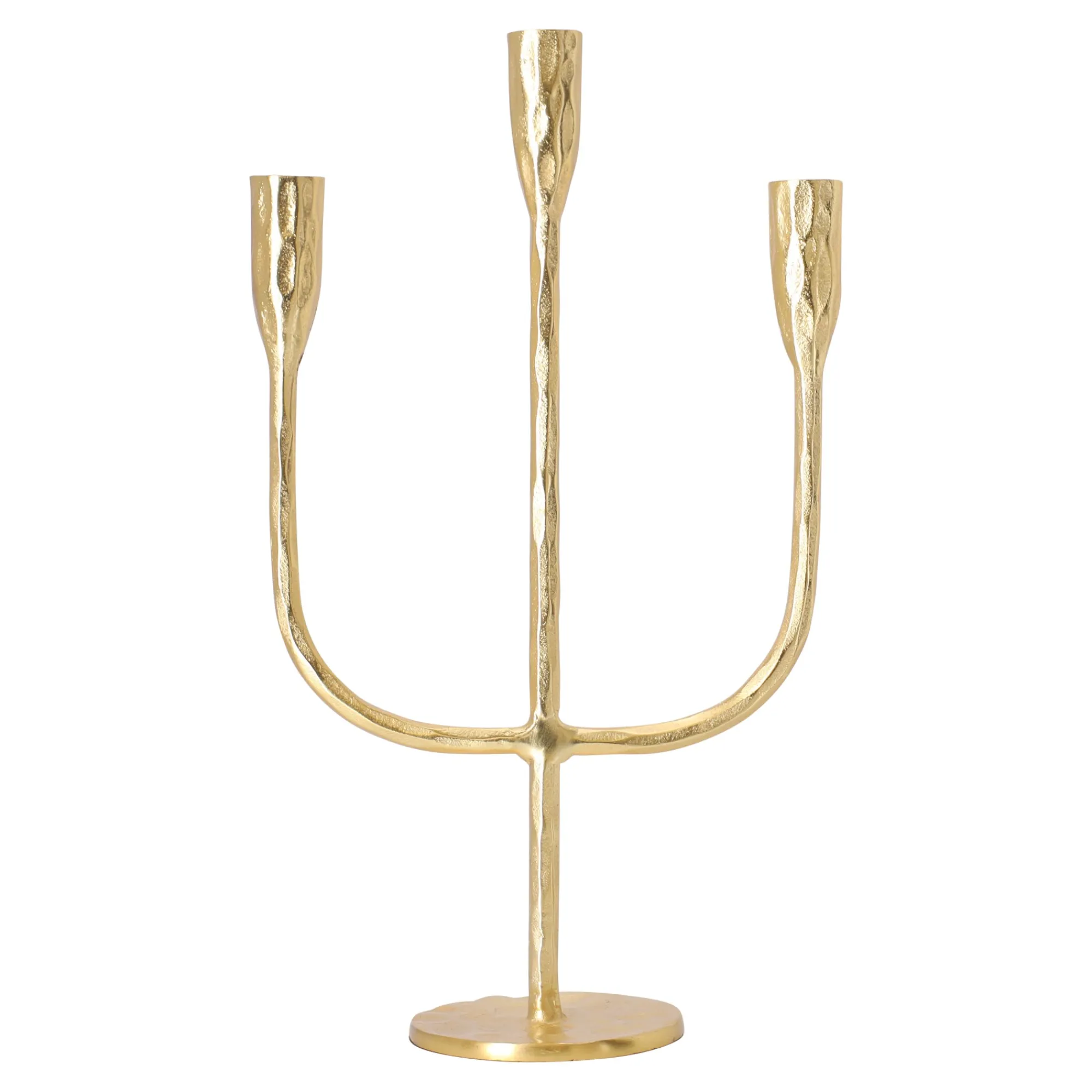 Een elegant accent voor uw interieur dat een warme en luxe sfeer creƫert. Gemaakt van duurzaam materiaal met een verfijnde gouden afwerking die een chique uitstraling geeft. De drie sierlijke, gebogen houders bieden plaats aan klassieke kaarsen en zorgen voor een zachte verlichting tijdens diners of feestelijke avonden. Perfect geschikt voor de woonkamer, eetkamer of speciale gelegenheden, waarbij het stijl en elegantie aan uw ruimte toevoegt.