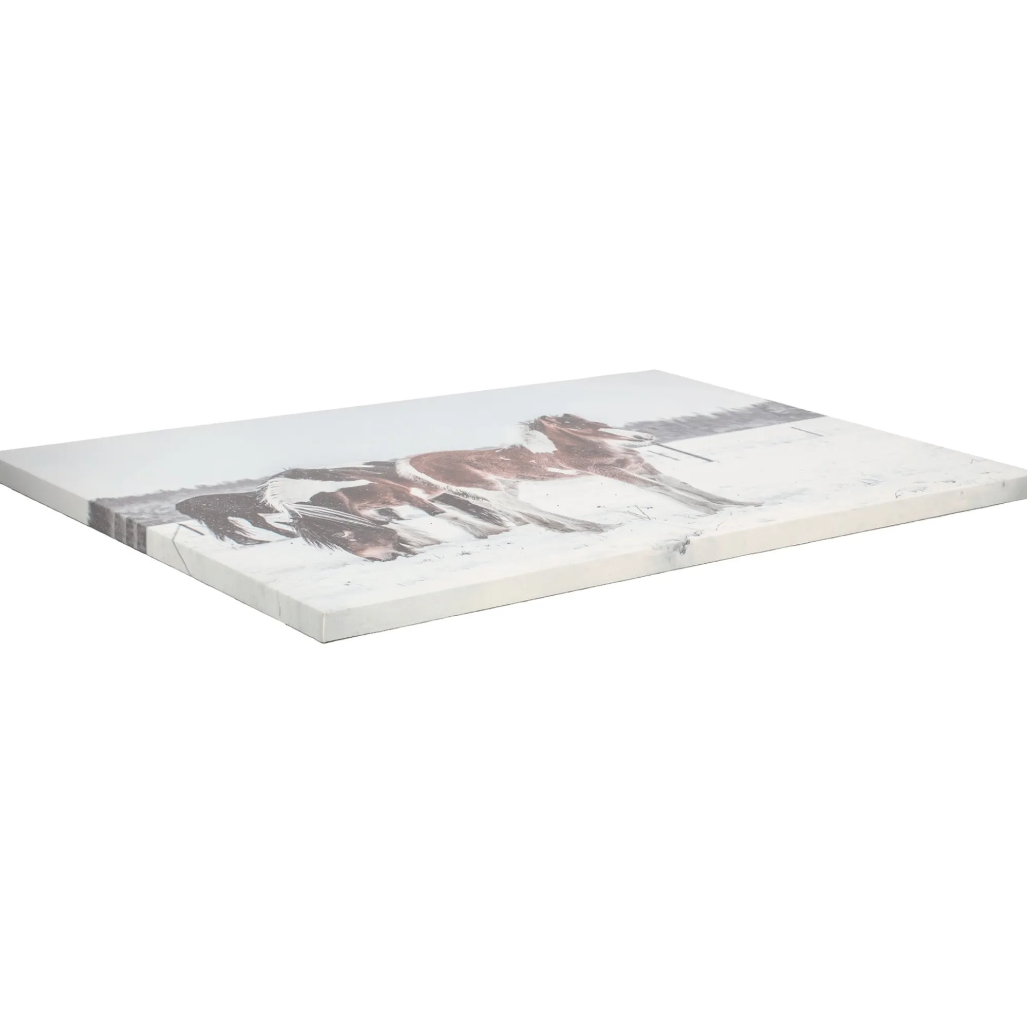 Schilderij met LED-verlichting en afbeelding van paarden in een besneeuwd winterlandschap, formaat 60 x 40 cm. Zorgt voor een sfeervol lichtaccent aan de muur.