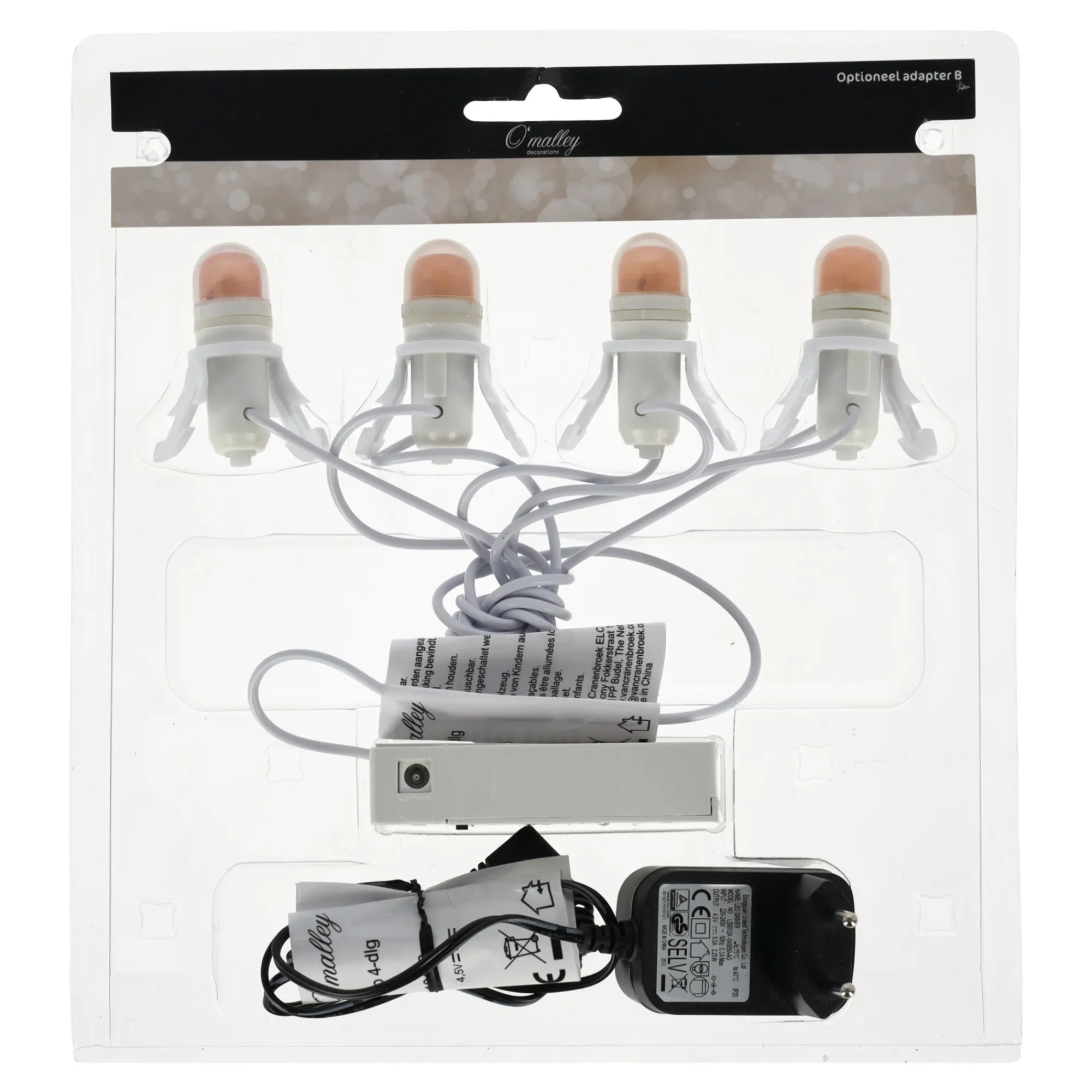 Deze verlichting is ideaal om huisjes of straatjes in je kerstdorp sfeervol te verlichten. De set bestaat uit vier warmwitte lampjes met vaste fitting en snoer. Werkt op netstroom via de meegeleverde adapter en is eenvoudig aan te sluiten. Geschikt voor binnengebruik. Perfect om extra warmte en gezelligheid aan je winterdorp toe te voegen.