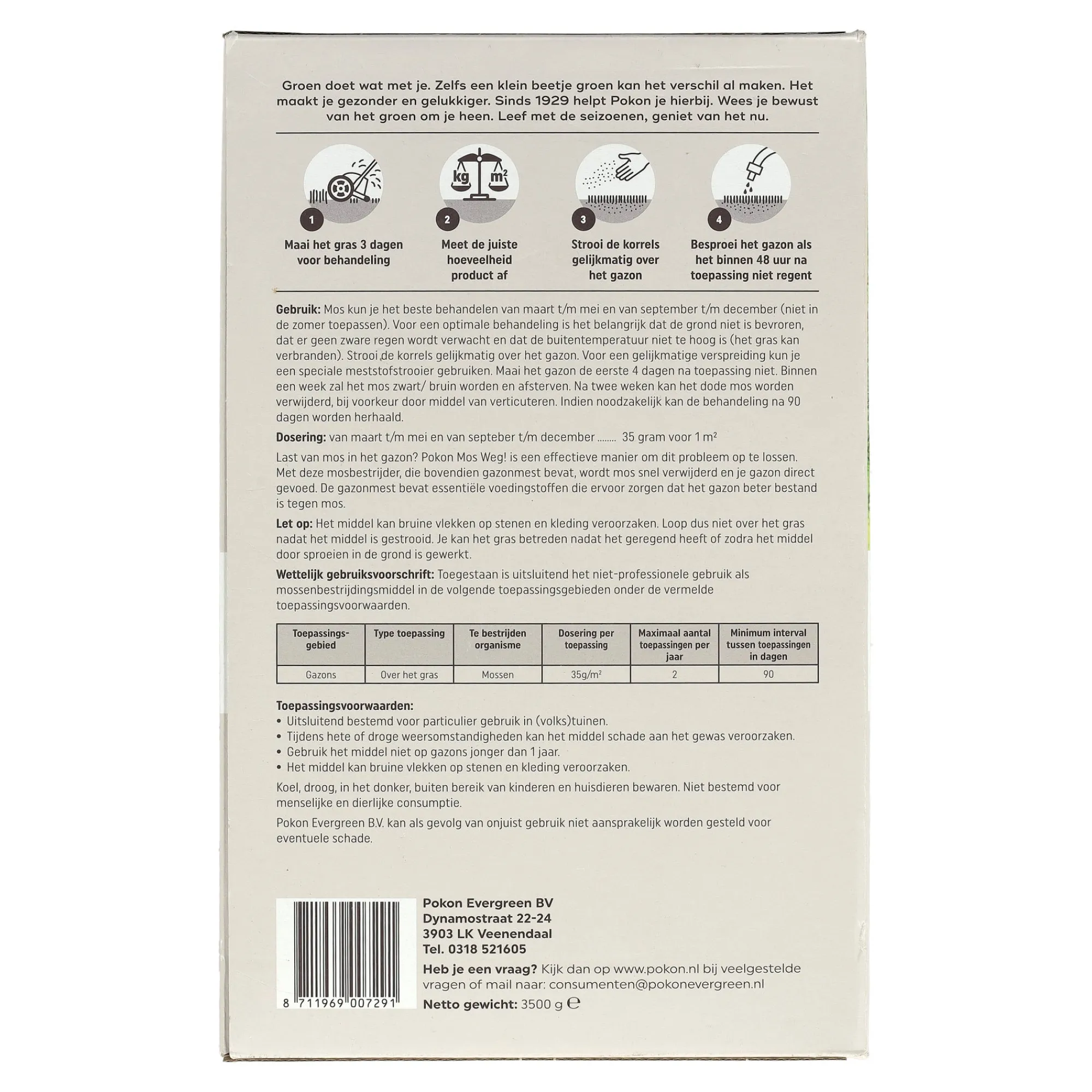 Verwijdert effectief mos van het gazon en herstelt de gezonde uitstraling van het gras. Eenvoudig in gebruik, helpt het gazon in optimale conditie te houden en voorkomt hergroei van mos.