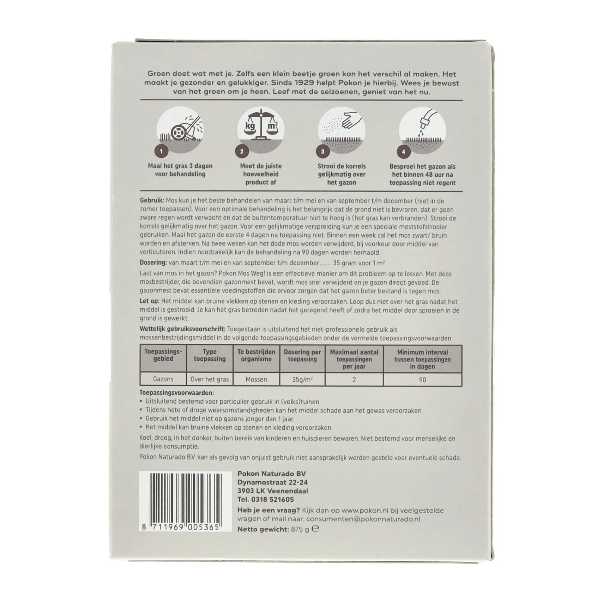 Verwijdert effectief mos van het gazon en herstelt de gezonde uitstraling van het gras. Eenvoudig in gebruik, helpt het gazon in optimale conditie te houden en voorkomt hergroei van mos.