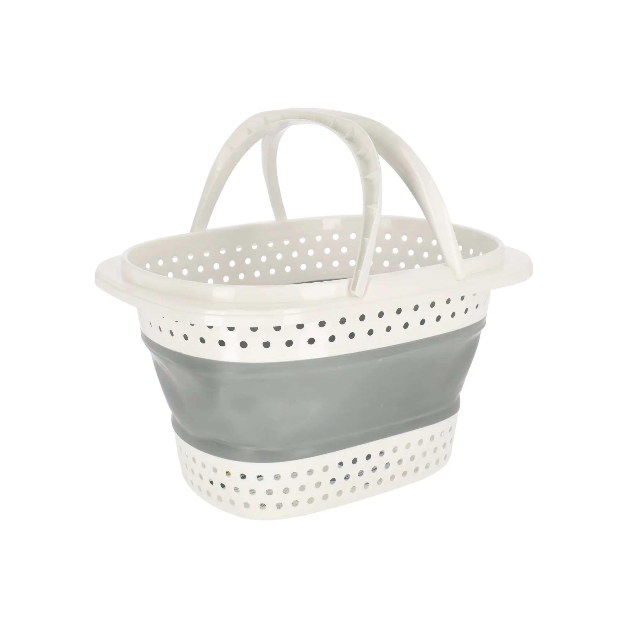 Deze opvouwbare wasmand is gemaakt van kunststof en heeft flexibele wanden. Dankzij het inklapbare ontwerp neemt de wasmand weinig ruimte in wanneer hij niet wordt gebruikt. De handgrepen maken het dragen van wasgoed eenvoudig en de open structuur zorgt voor ventilatie. Geschikt voor gebruik in de badkamer, wasruimte of slaapkamer.