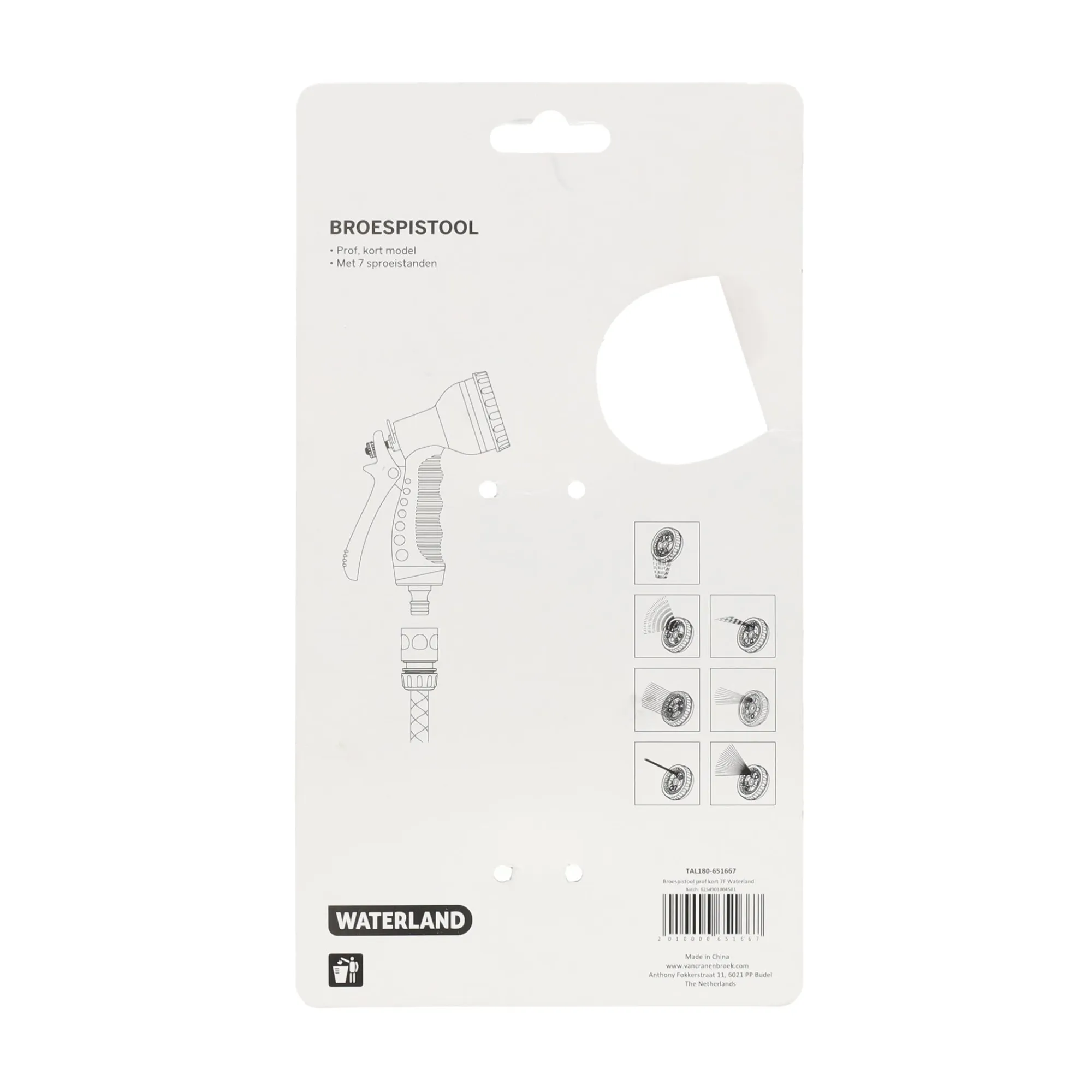 Het Waterland broespistool werkt in alle situaties. Hierdoor kun je het gras en planten in de tuin water geven, de auto wassen of het zwembad vullen. Het apparaat is uitgerust met 7 verschillende sproeistanden die aan uw behoeften kunnen worden aangepast.