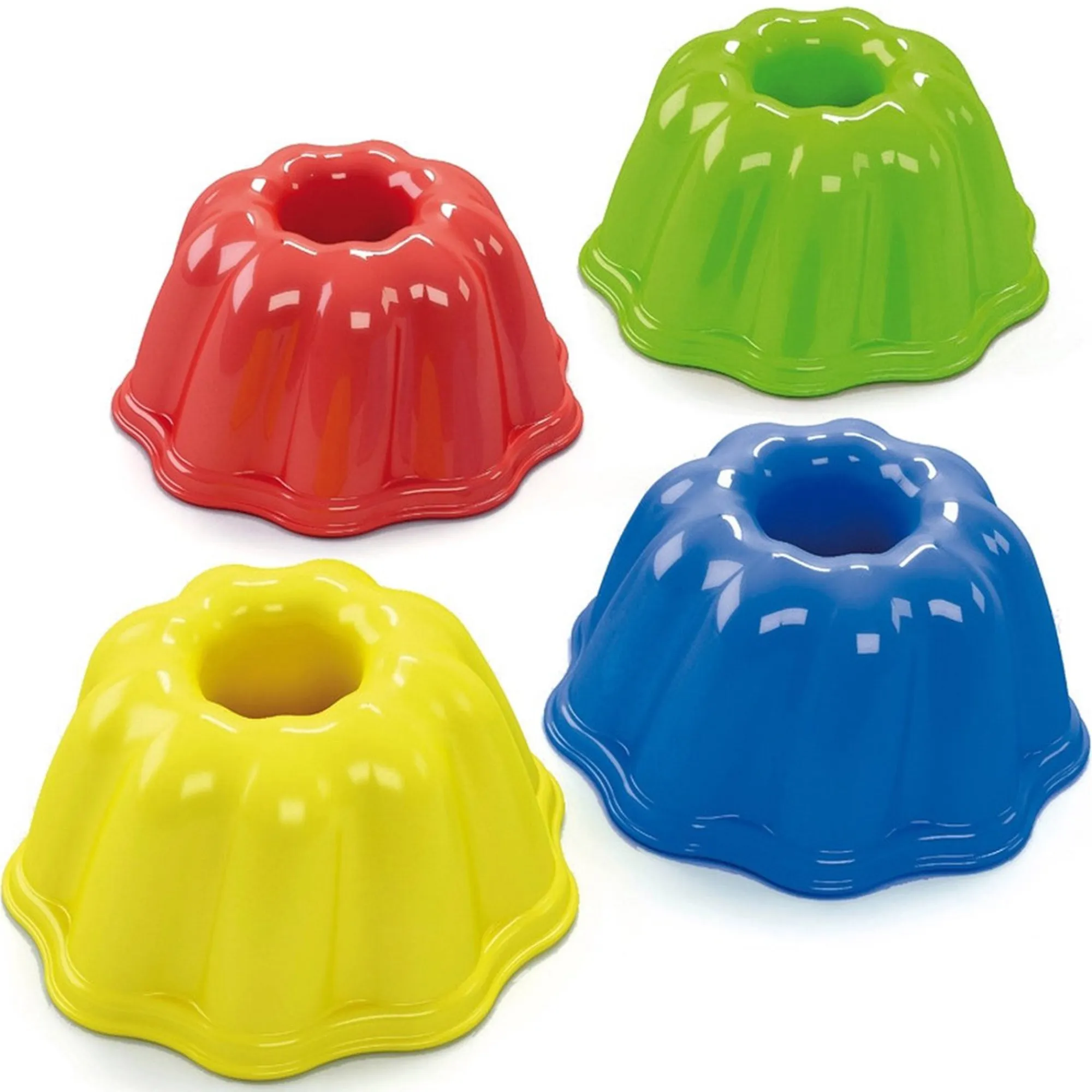 Stevige 12 cm strandbakvorm in vrolijke kleuren om zandtaartjes te maken, geleverd in verschillende uitvoeringen.