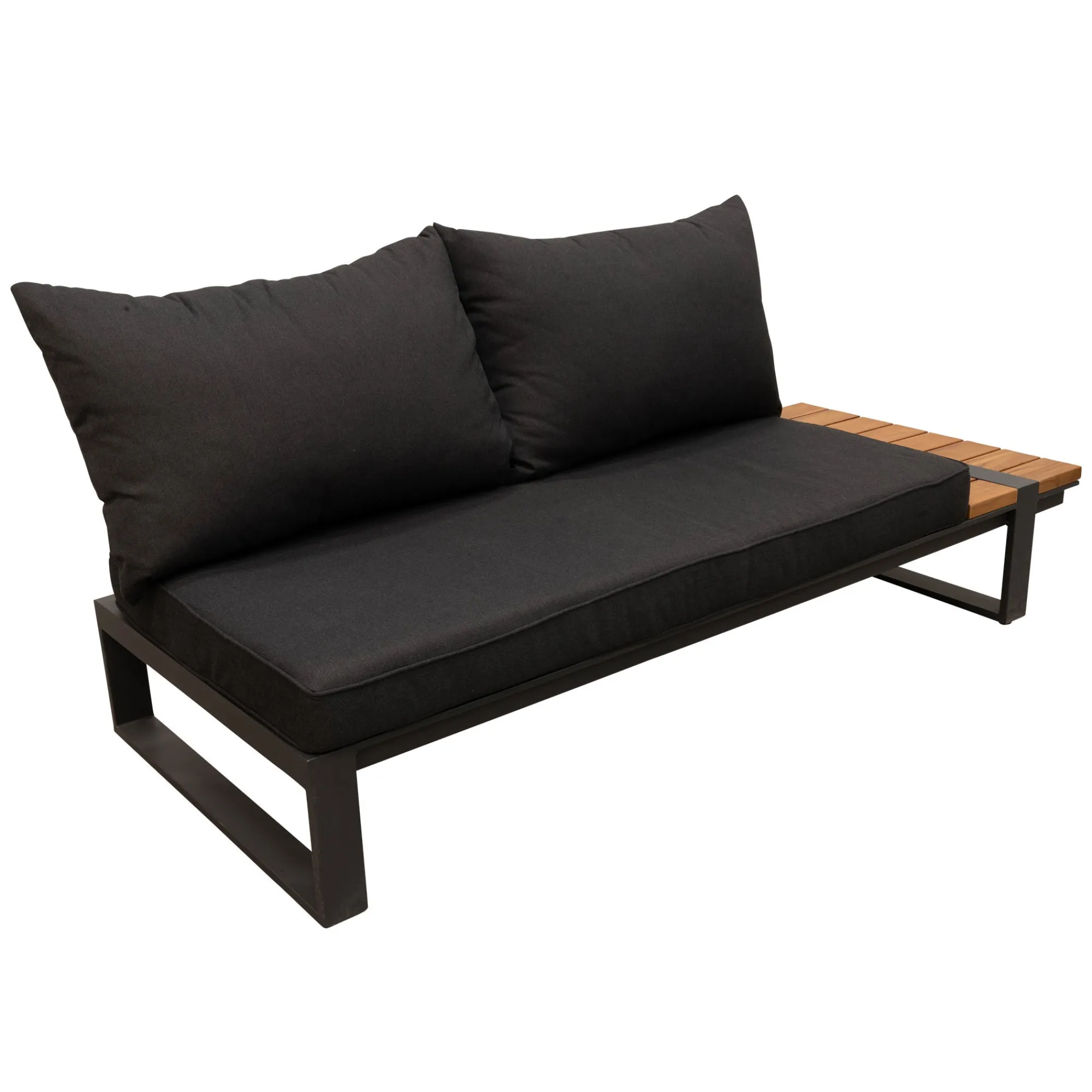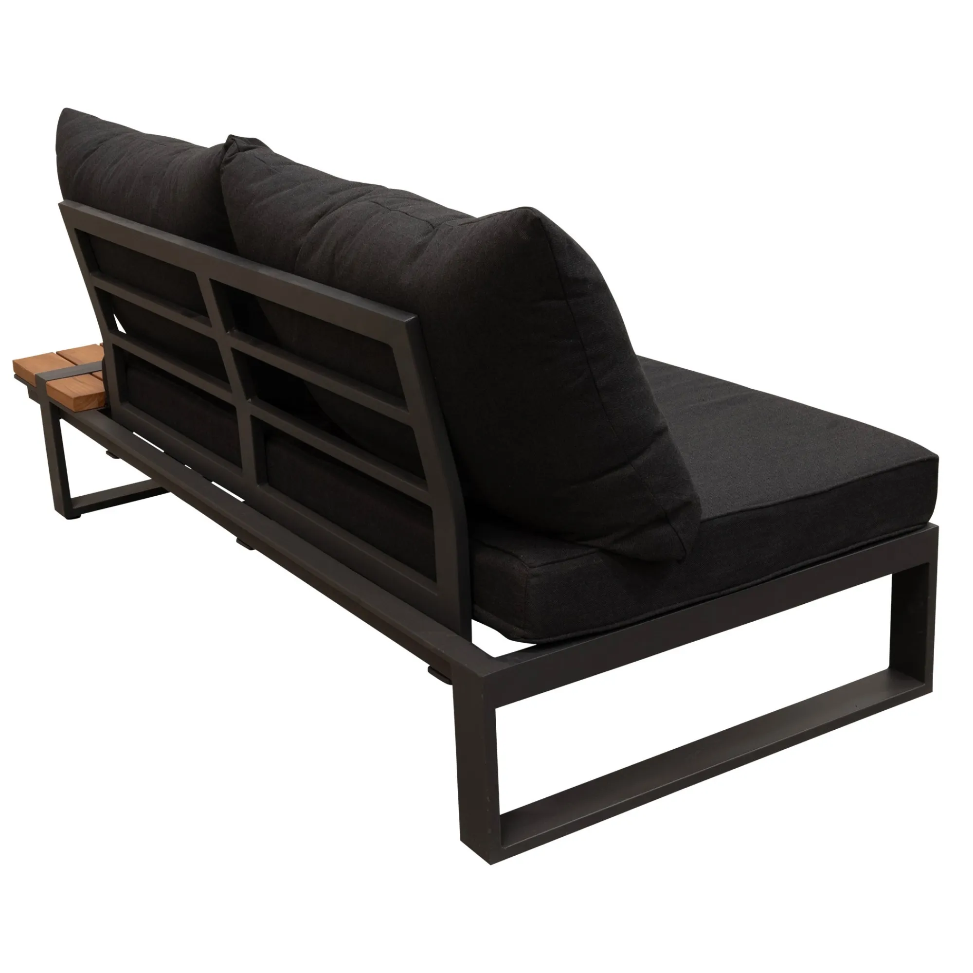 De Frullo 2-zitsbank met linkerarmleuning is een moderne en stijlvolle loungesetbank die perfect tot zijn recht komt in elke buitenruimte. Het aluminium frame maakt de bank licht, stevig en roestvrij, terwijl het verwerkte teakdetail zorgt voor een warme, natuurlijke uitstraling. De bank is voorzien van luxe katoenkussens voor optimaal comfort en ondersteuning. De antracietkleur geeft een rustige en elegante sfeer en laat zich makkelijk combineren met andere tuinmeubelen. Ideaal voor gebruik in een hoekopstelling of tegen een muur.