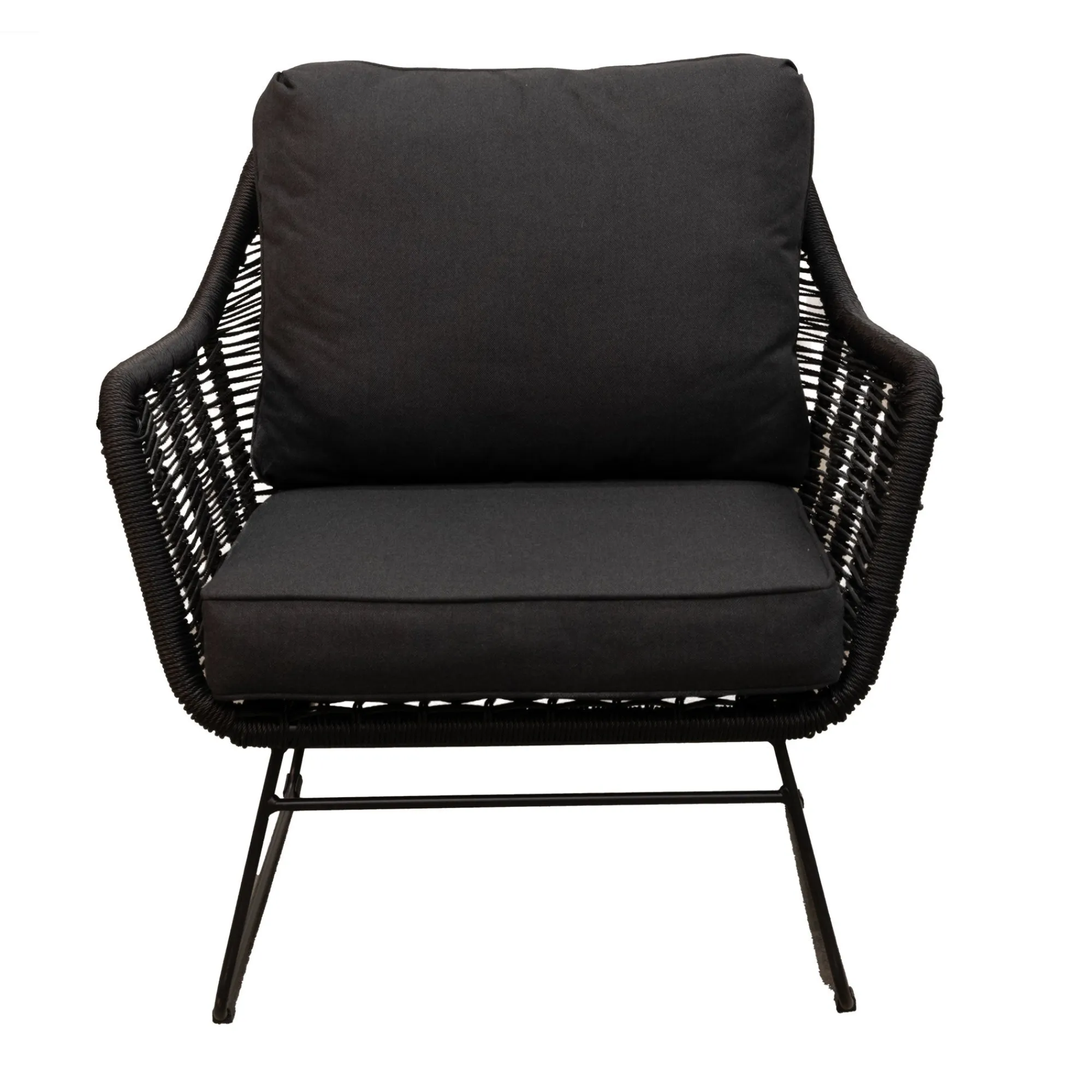De stoel Mezzavia is een comfortabele en stijlvolle lage stoel voor binnen- of buitengebruik. Het 100% aluminium frame is licht, roestvrij en onderhoudsvriendelijk. De rugleuning en armleuningen zijn afgewerkt met decoratief touw, wat de stoel een moderne en verfijnde uitstraling geeft. De meegeleverde kussens zijn van 100% katoen. Een elegante keuze voor wie comfort en design wil combineren.