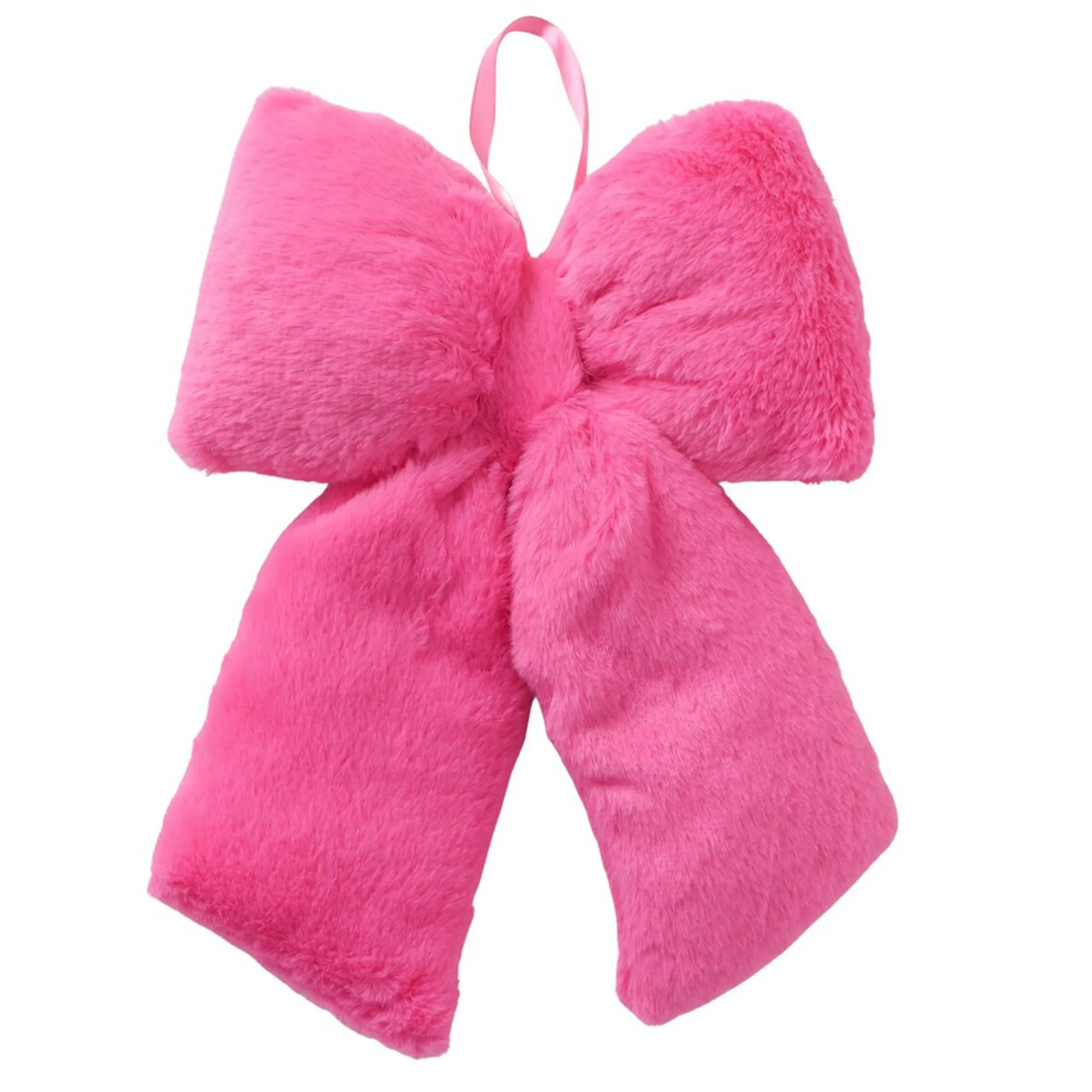 Grote decorstrik met fluffy textuur en opvulling. Gemaakt van synthetisch pluche materiaal, voorzien van ophanglus.