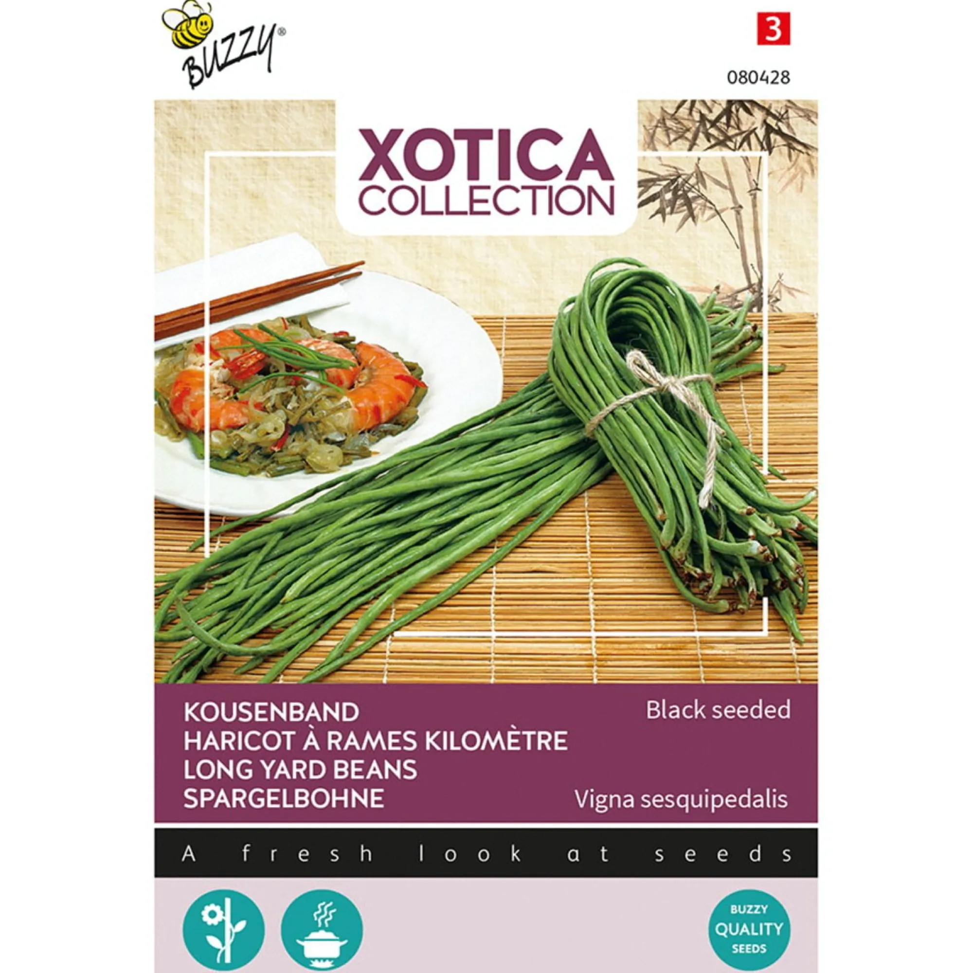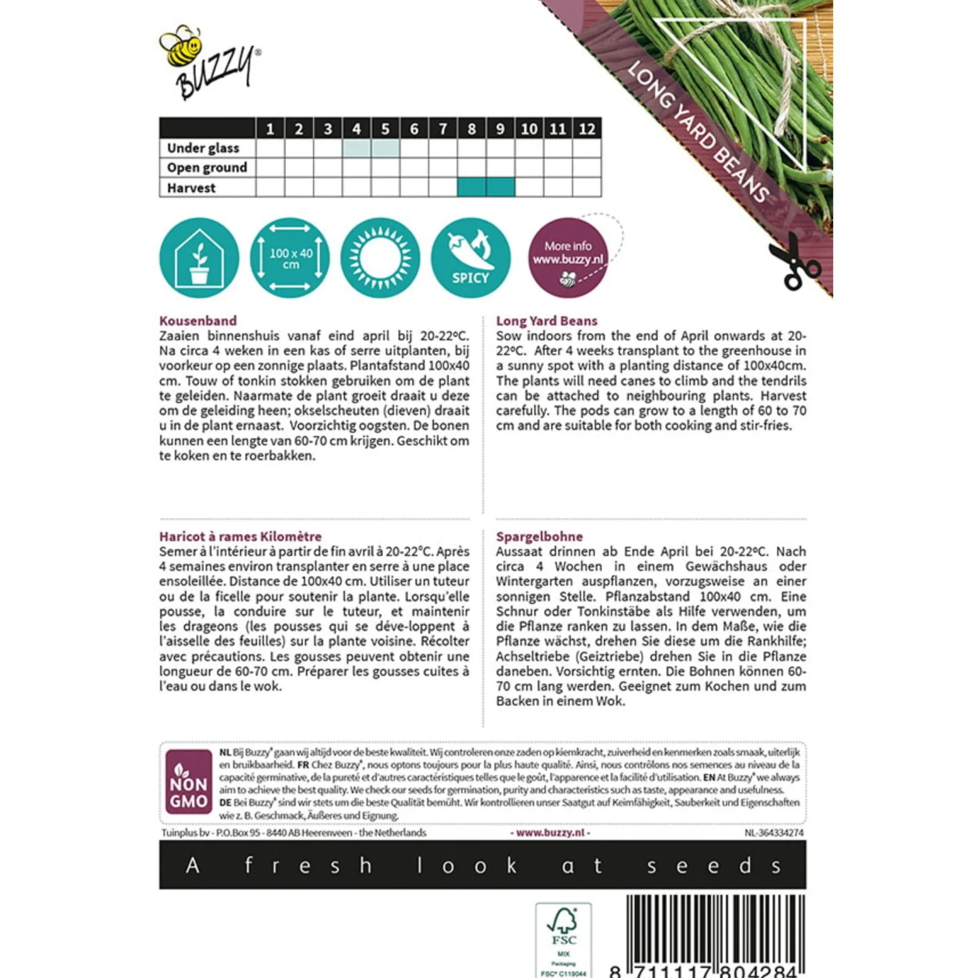Lange, slanke peulvrucht met malse smaak, populair in de Aziatische en Surinaamse keuken. Warmteminnende plant, geschikt voor kas of zonnige plek in de volle grond. Ideaal om te roerbakken of stoven.