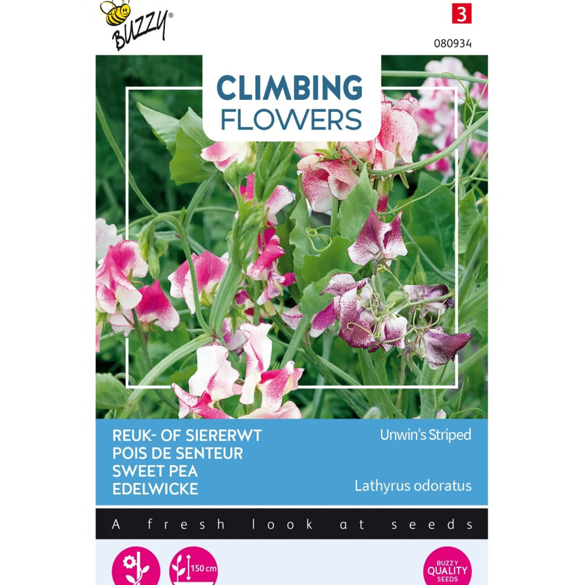 Heerlijk geurende Lathyrus met gestreepte bloemen in roze- en paarsnuances. Ideaal als klimplant voor hekken, rekken of als snijbloem. Bloeit rijk van voorjaar tot zomer.