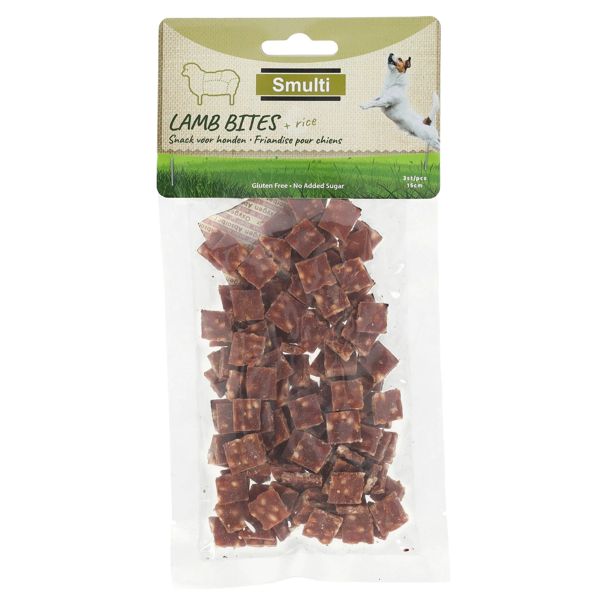 De Hapki lam + rijsthapjes zijn een heerlijke en voedzame traktatie voor honden, gemaakt van mals lamsvlees en licht verteerbare rijst. Deze hapjes zijn rijk aan eiwitten en bieden een smakelijke, gezonde snack voor honden met een gevoelige maag of voedselallergieën. Ze bevatten geen kunstmatige toevoegingen en zijn perfect als beloning of tussendoortje. Geschikt voor honden van alle rassen en leeftijden, deze lam en rijst hapjes bieden je hond een natuurlijke en gezonde traktatie die hij of zij zeker zal waarderen! Laat de hond niet alleen met kauwmateriaal. Zorg voor vers water.