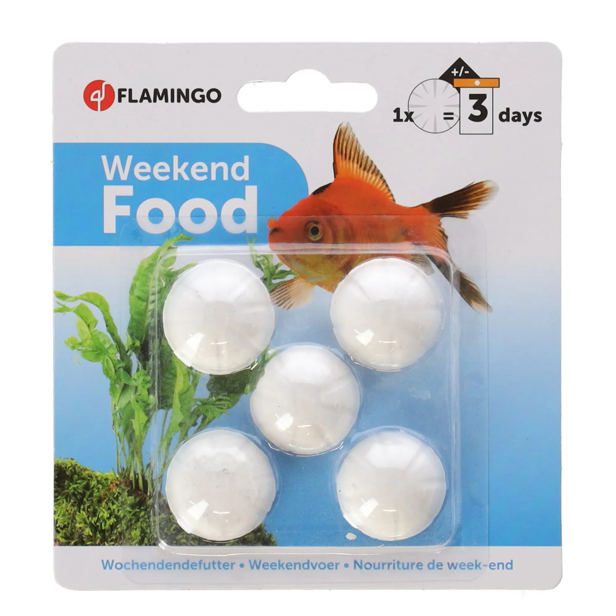 Weekendvoer is speciaal ontworpen om uw vissen te voeden tijdens uw afwezigheid. Het lost langzaam op en voorziet uw vissen enkele dagen van de nodige voedingsstoffen. Dit voer is geschikt voor alle soorten aquariumvissen en zorgt voor een gezonde en veilige voeding gedurende het weekend.