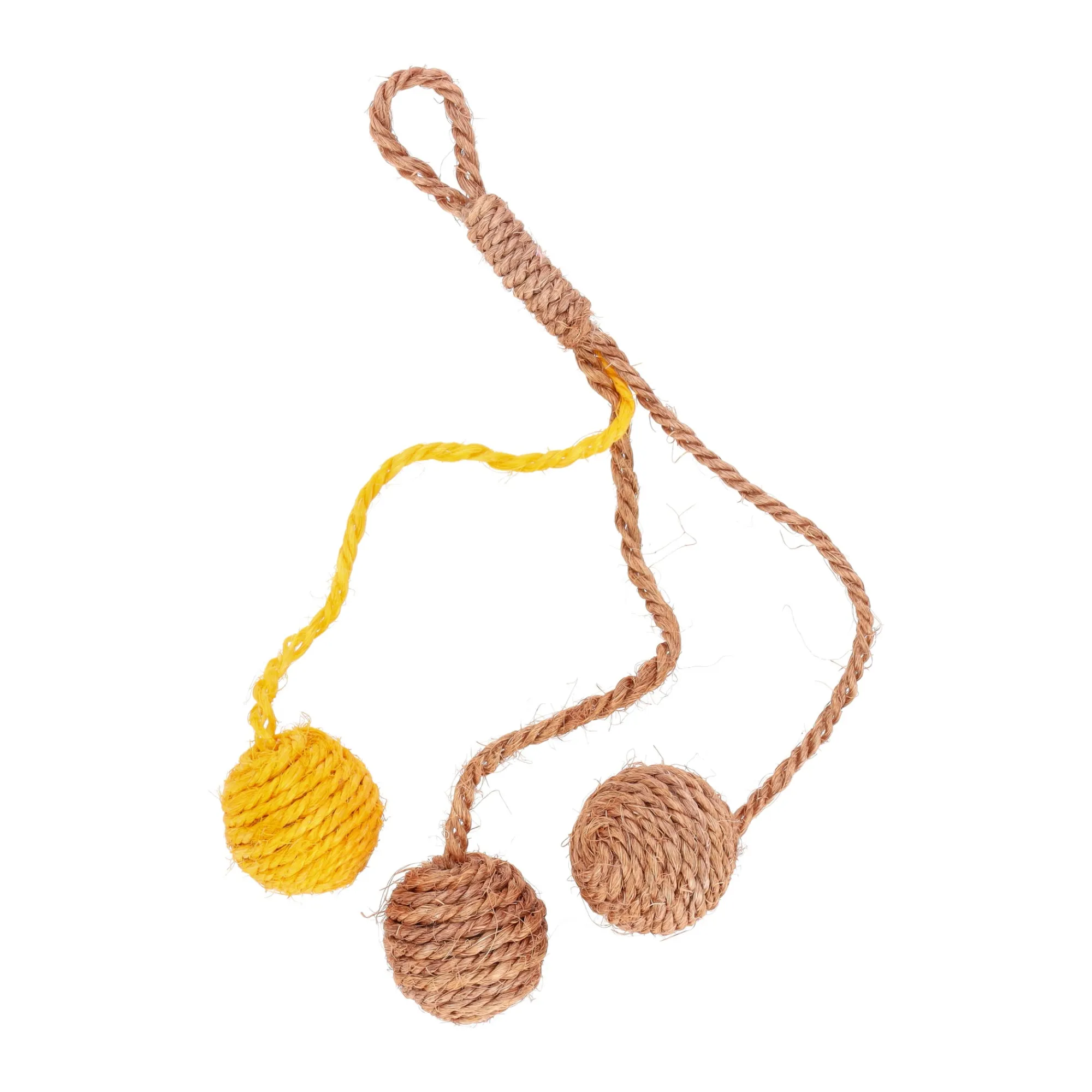 Met touw en meerdere sisal ballen is dit kattenspeeltje geschikt om achteraan te jagen, te slaan en vast te grijpen. Het speeltje bevat catnip en een rammelend geluid voor extra prikkels tijdens het spelen. Met een lengte van circa 25 cm is het geschikt voor dagelijks speelplezier.
