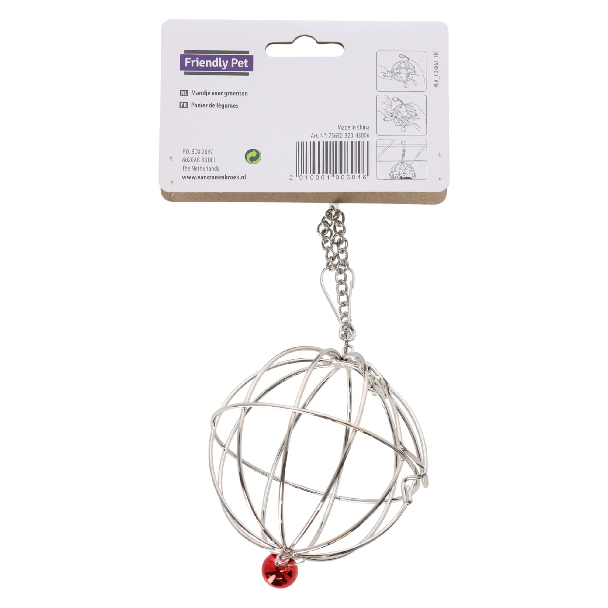 De groentenkorf van metaal is ideaal om vers voer aan te bieden aan knaagdieren. Met een compacte diameter van 8,5 cm is hij praktisch en gemakkelijk te vullen.
