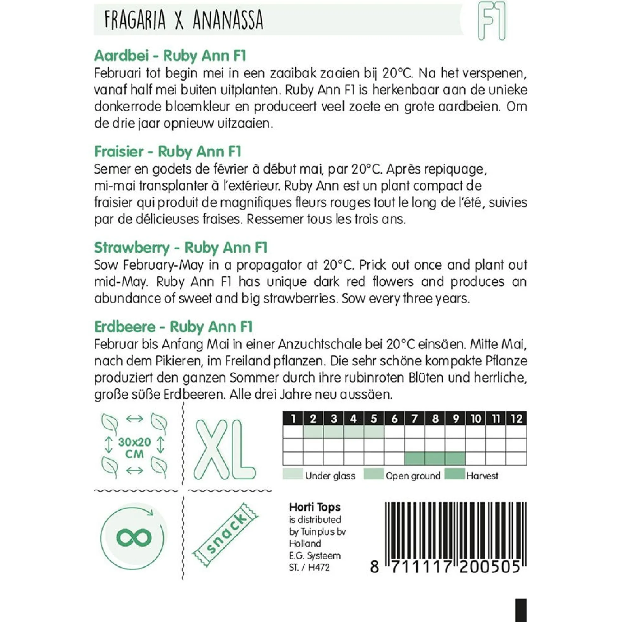 Horti Tops Moestuin>Aardbeien Ruby Ann hangaardbei
