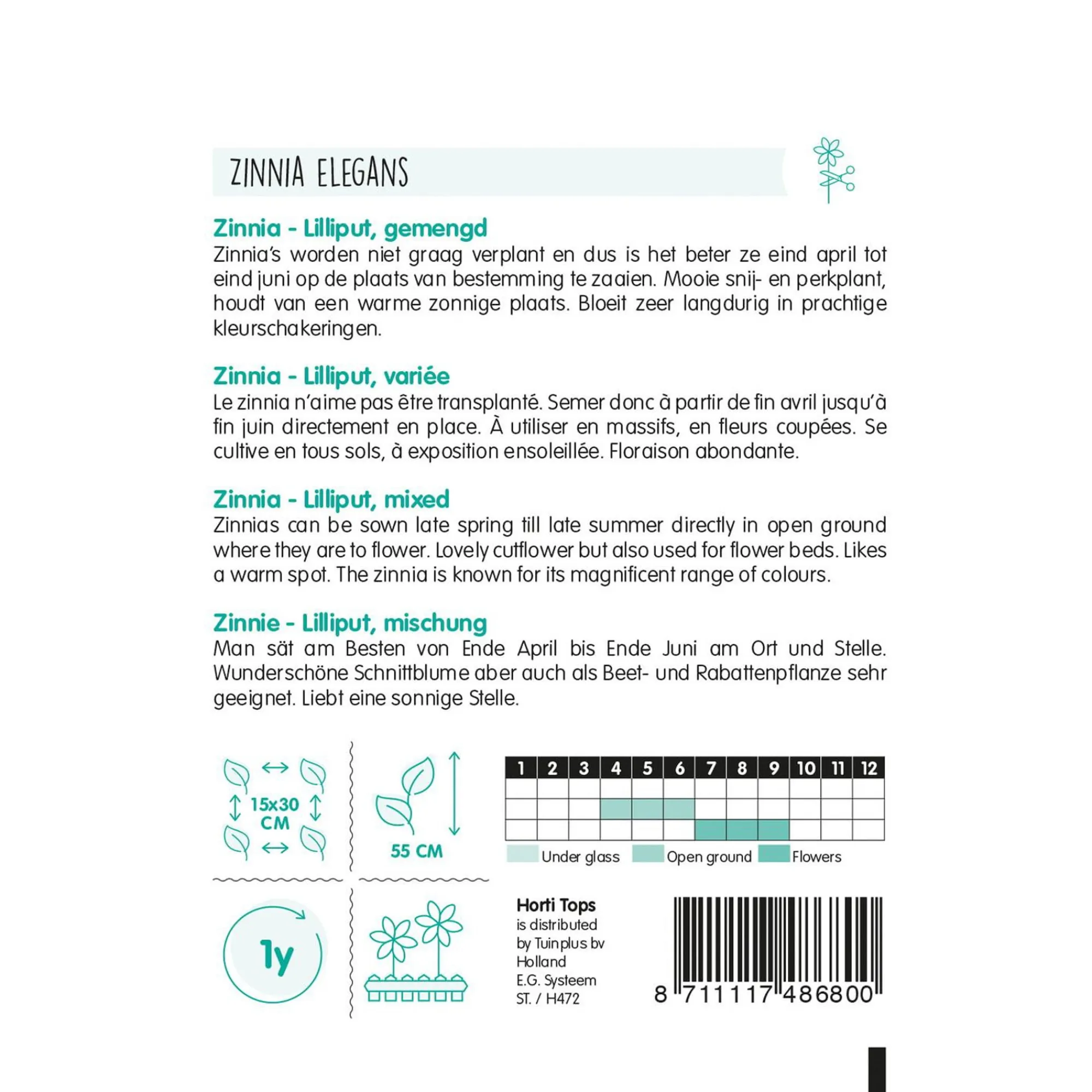 Horti Tops Moestuin>Zinnia Liliput mix