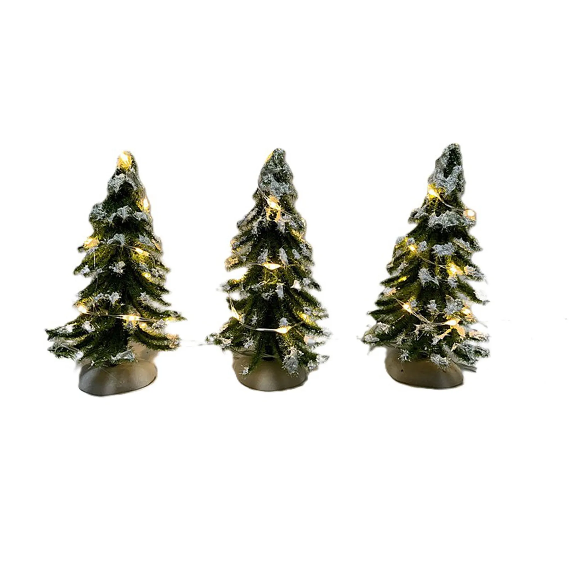 Set van drie bomen, ideaal om je kerstdorp uit te breiden en extra winterse sfeer toe te voegen.