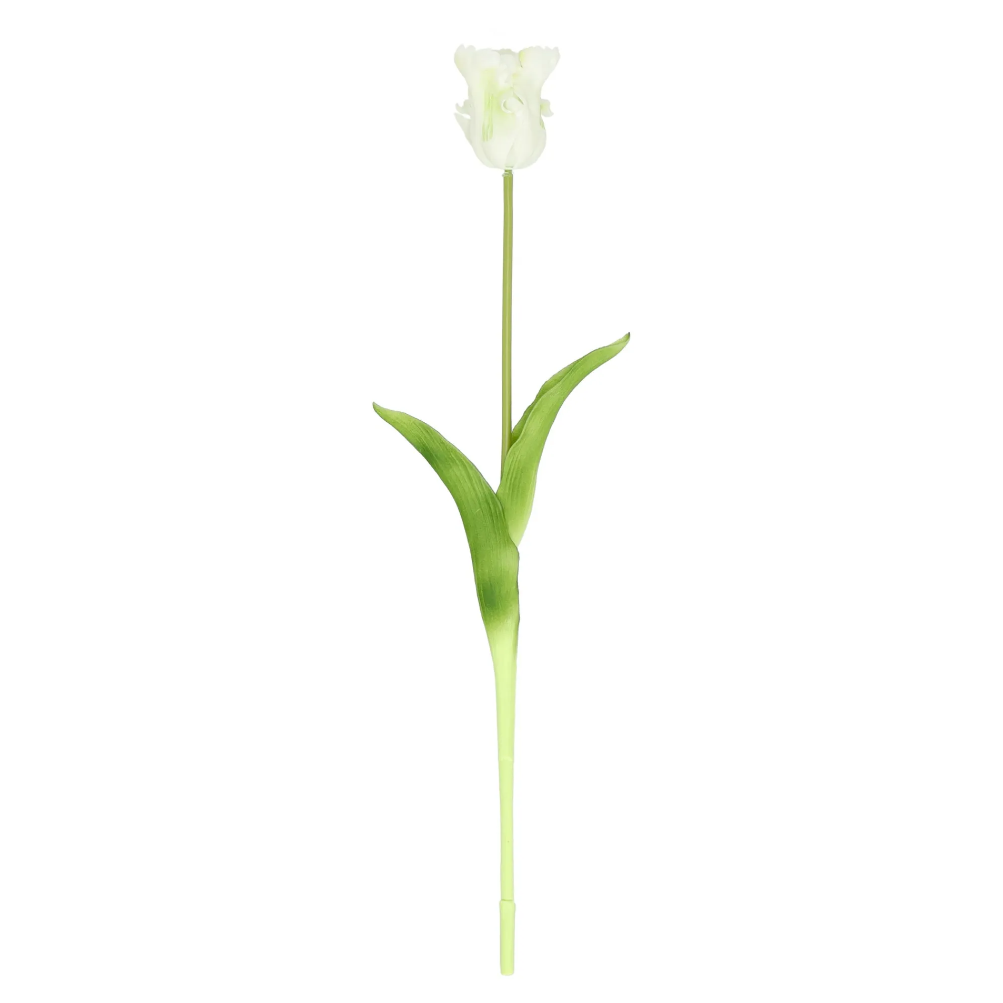 Kunsttulp met een real-touch afwerking in elegant wit. De bloem voelt zacht en natuurlijk aan en heeft een realistische vorm en bladstructuur. Met een lengte van 62 cm is deze tulp perfect om los in een vaas te plaatsen of te combineren met andere kleuren voor een stijlvol boeket.