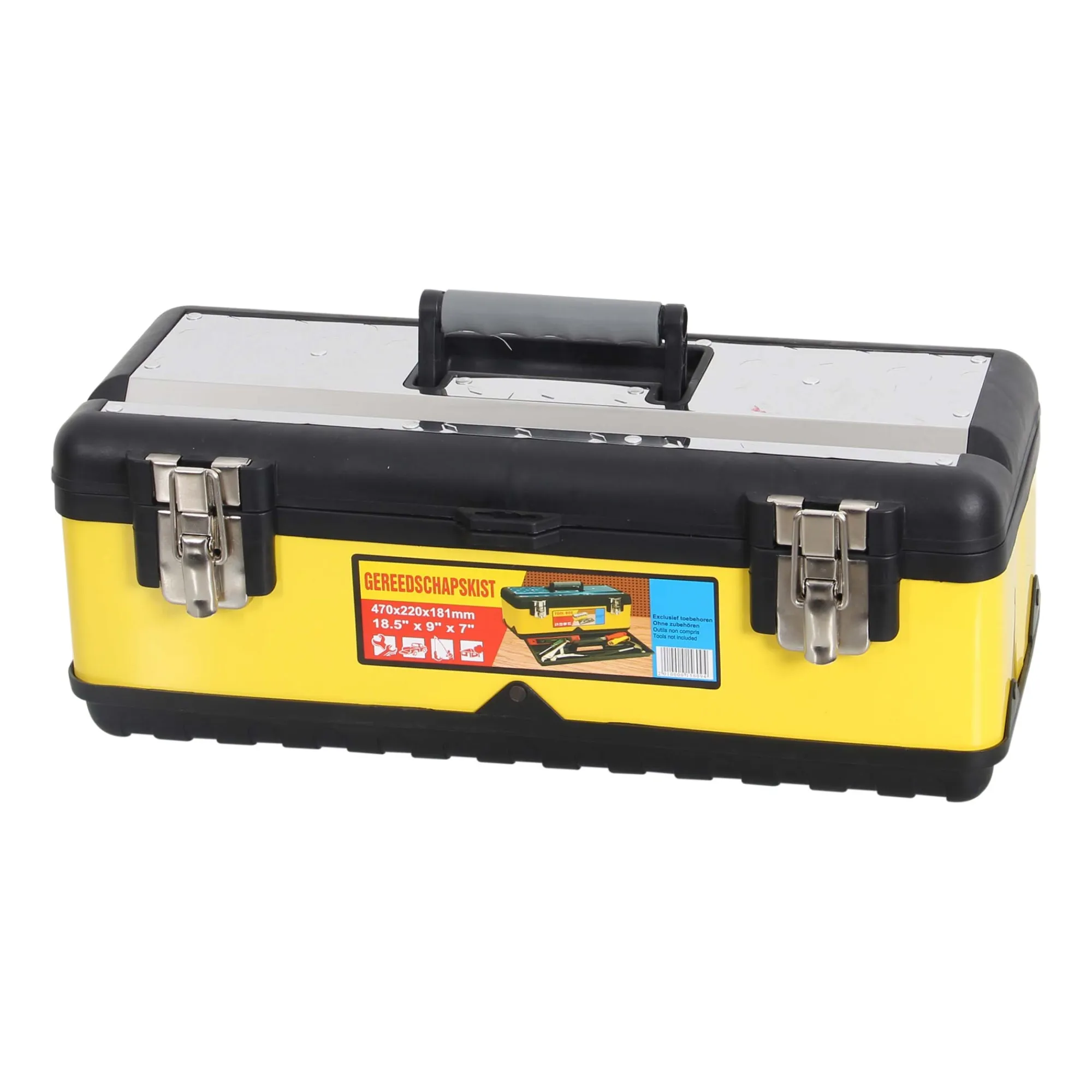 Een stevige en functionele gereedschapskist van 47 cm, ontworpen voor het handig opbergen en vervoeren van diverse gereedschappen en accessoires. Ideaal voor ambachtslieden, automonteurs, bouwvakkers en iedereen die waarde hecht aan orde en efficiëntie in hun werk.