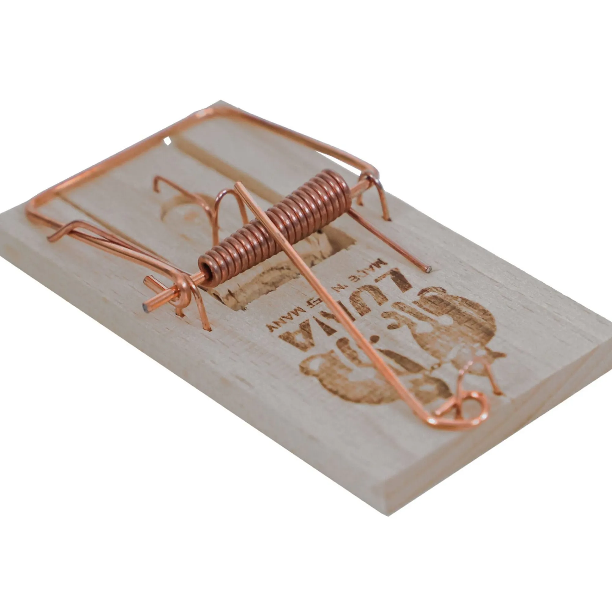 Houten muizenval met metalen beugel. Eenvoudig in gebruik en effectief voor het vangen van muizen in huis of schuur.
