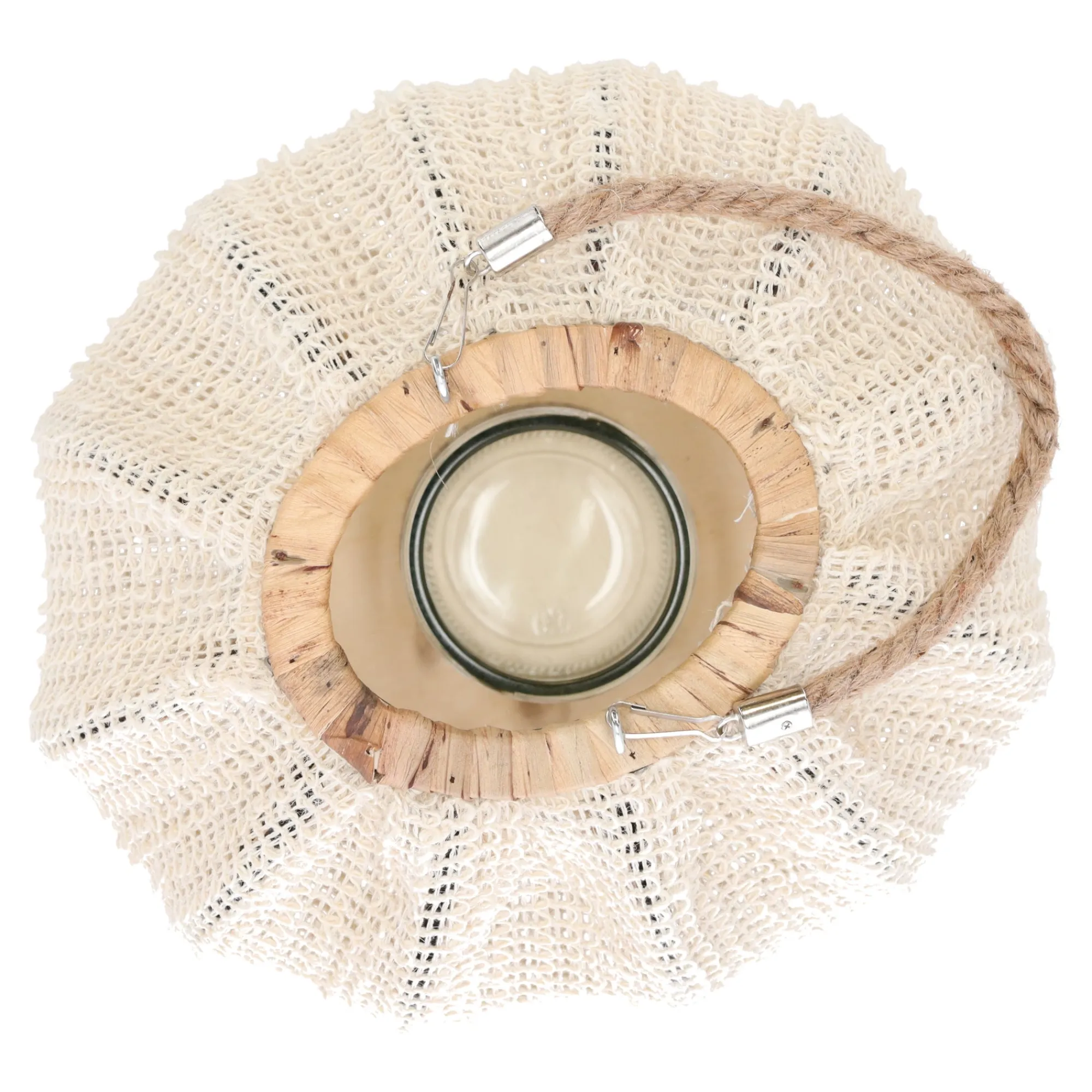 Natural Collections Woondecoratie>Lantaarn katoen met glas wit 28 x 24 x 16 cm