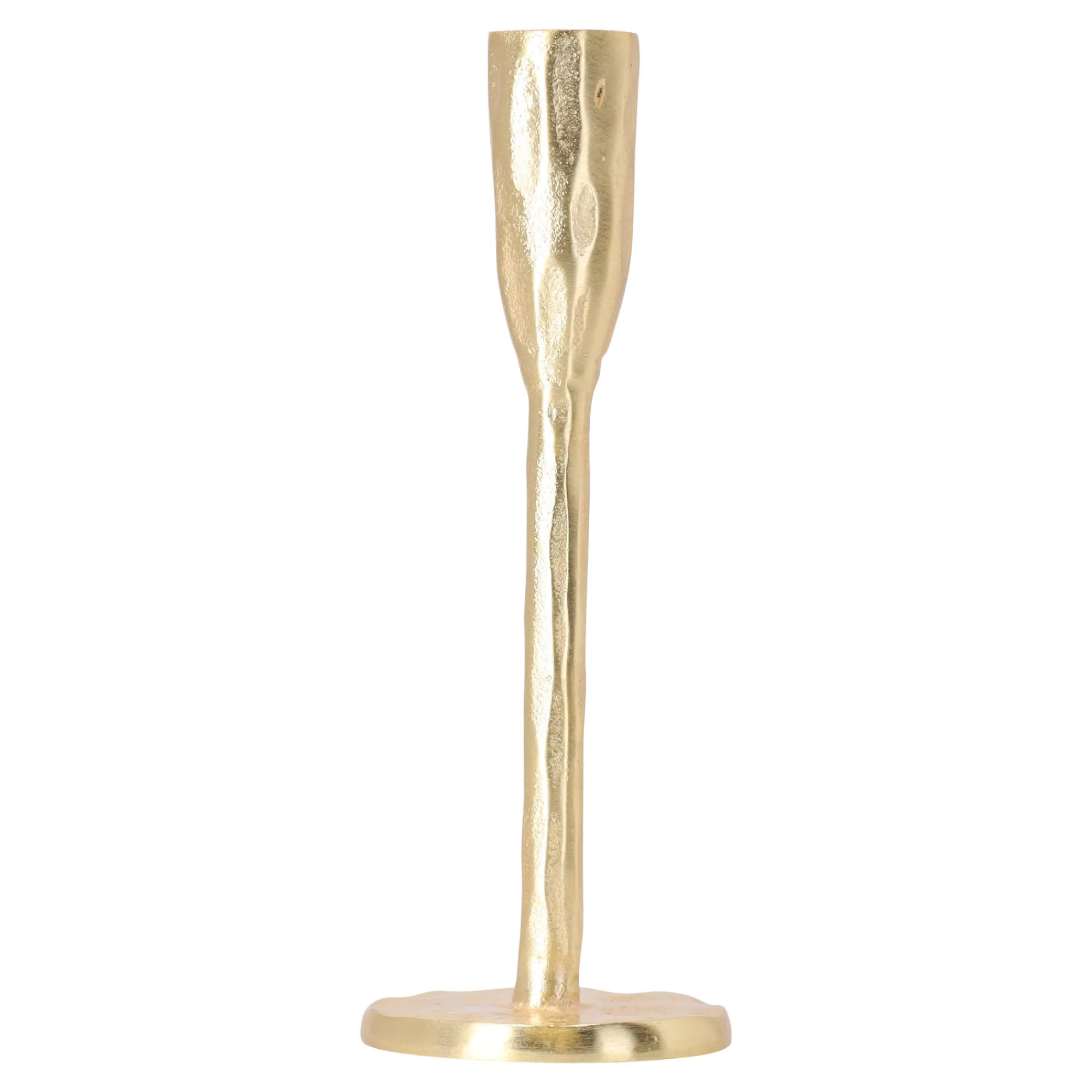 Kaarshouder voor dinerkaars, gemaakt van metaal met een elegante gouden afwerking, is een stijlvolle toevoeging aan uw interieur. Met een hoogte van 20 cm is hij geschikt voor standaard kaarsen en creƫert hij een warme en gezellige sfeer in de woonkamer, eetkamer of slaapkamer. Dit verfijnde accessoire is perfect voor zowel dagelijks gebruik als speciale gelegenheden en voegt een vleugje elegantie toe aan uw ruimte.