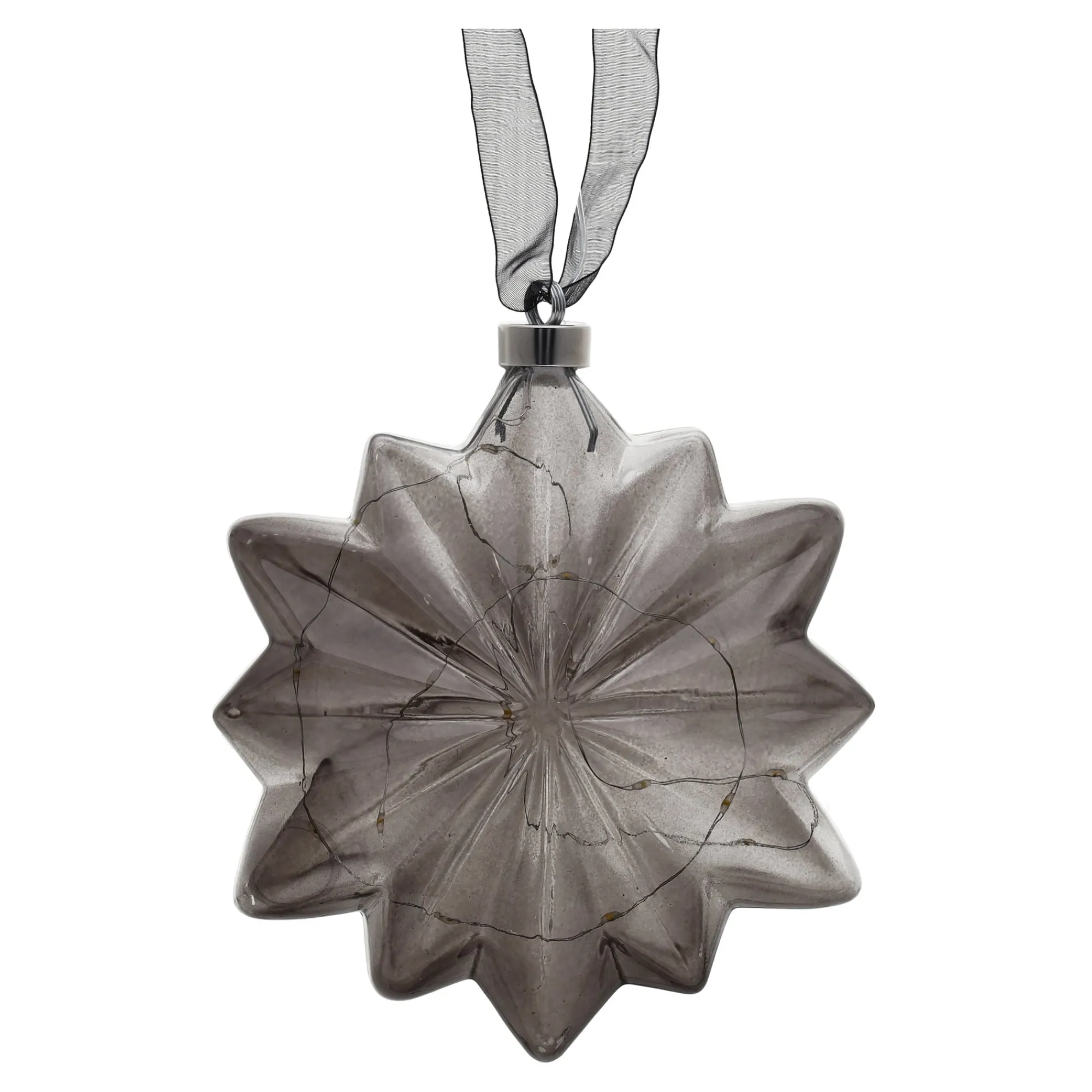 O’malley Kerstballen>Bloem met lint grijs 19 cm 20 LED-ww