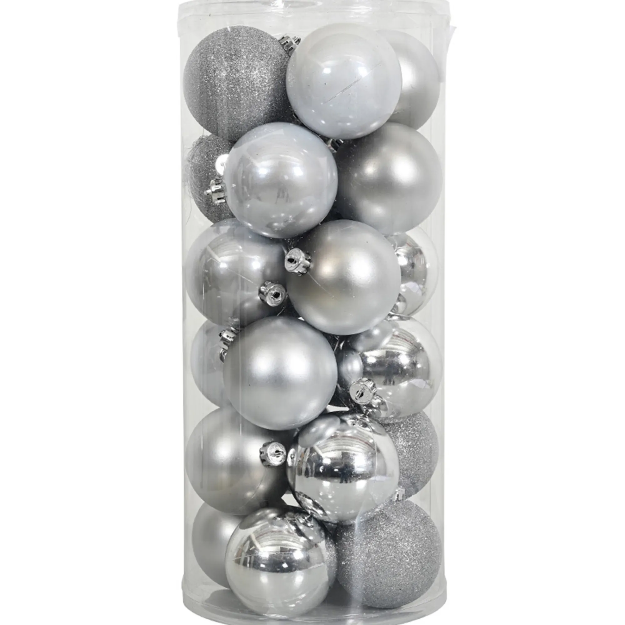 | Size | Kerstbal 4cm mix koker 24st zilver, Kerstbal 6cm mix koker 24st zilver, Kerstbal 8cm mix koker 24st zilver |