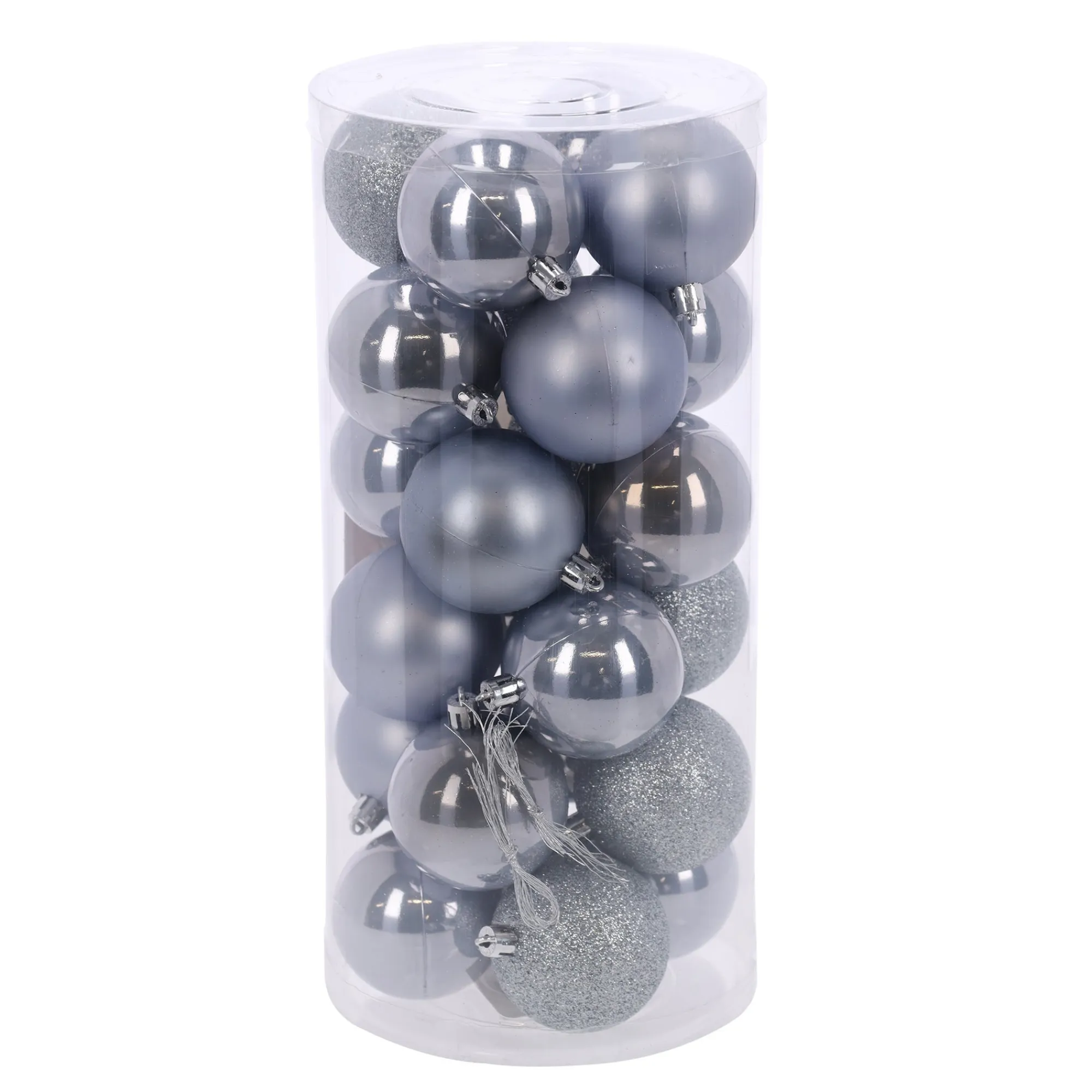 | Size | Kerstbal 6 cm mix 24st hazy blue, Kerstbal 8 cm mix 24st hazy blue |
